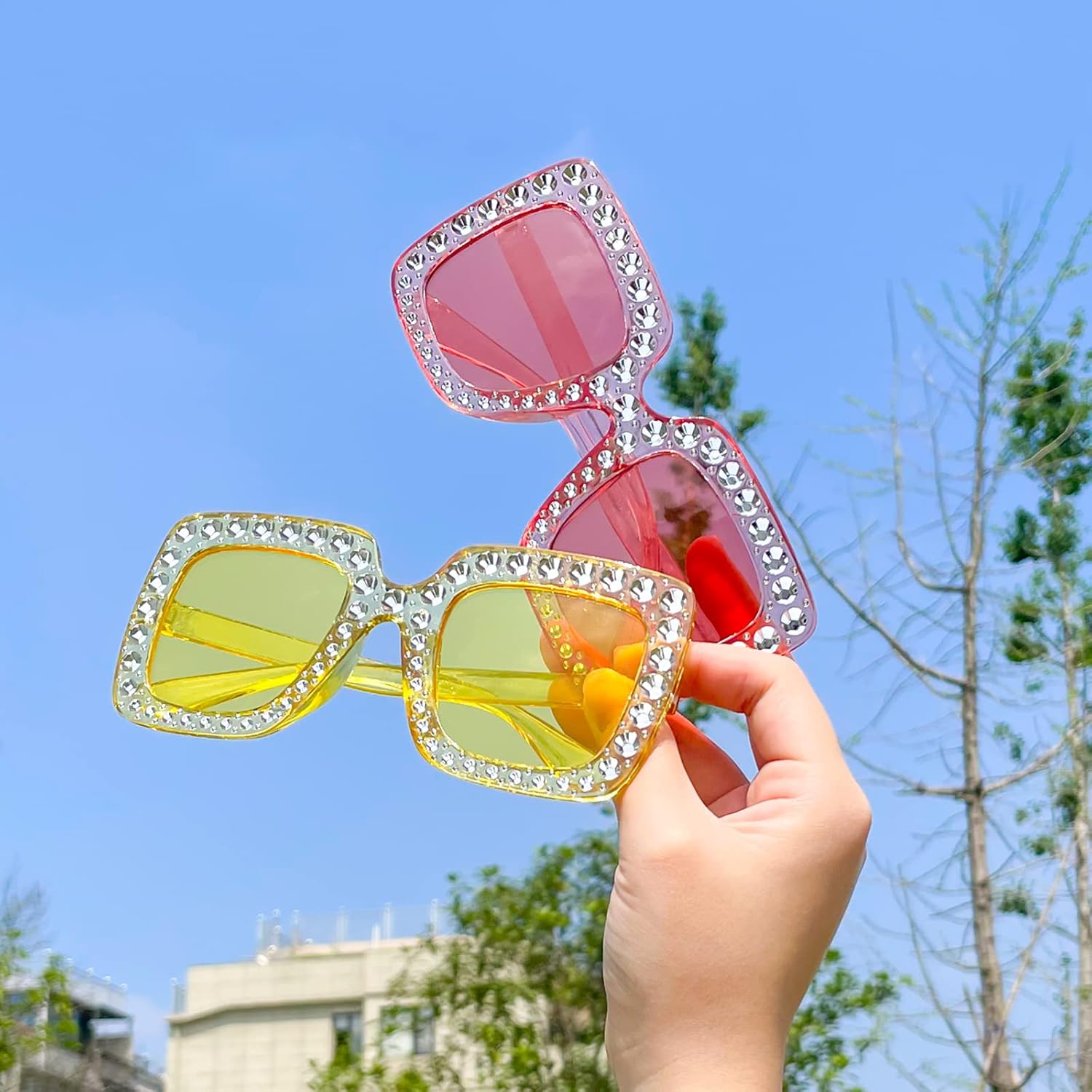 Women Sparkling Crystal Sunglasses Oversized Square Diamond Thick Frame Glasses Funky Big Cool Eyeswear