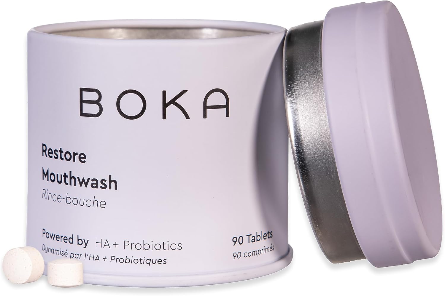 Boka Travel Size Mouthwash Tablets - Hydroxyapatite, Fluoride Free & Alcohol Free - Chewable Tablets to Freshen Breath, Kill Odor Quickly - (90 Pcs, Mint)