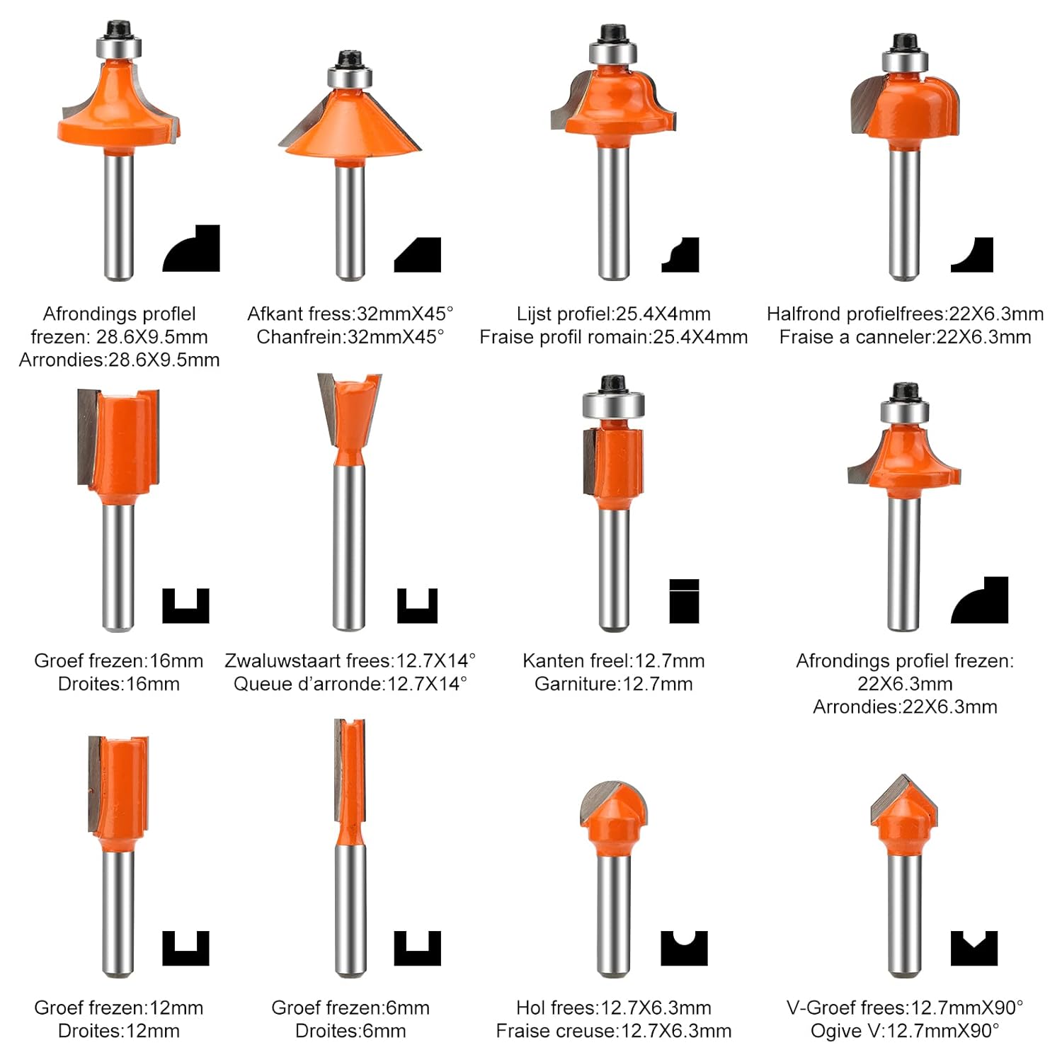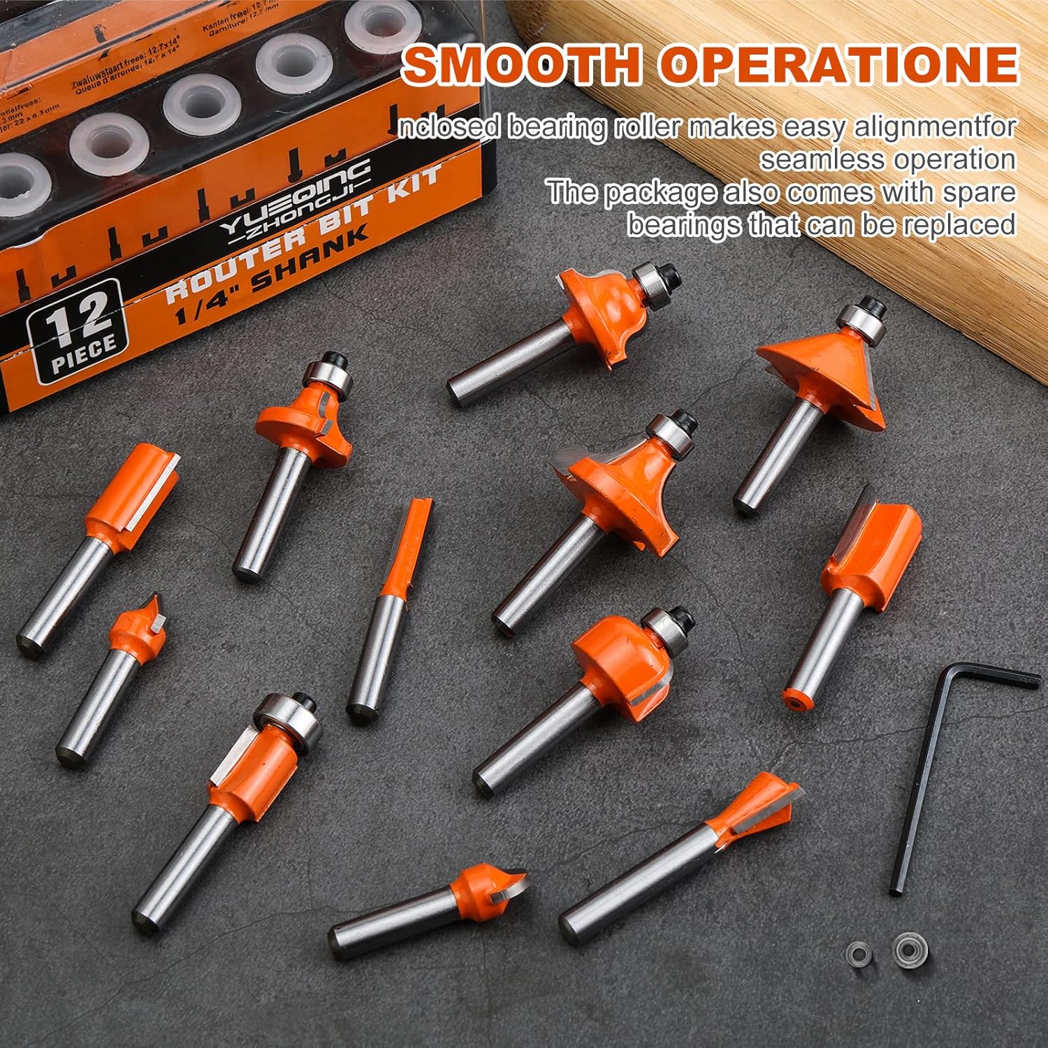 [After sales worry free] Our 12-piece 1/4 inch shank router bit set allows you to easily accomplish a wide range of tasks.If you have any questions about the product, please contact us We will provide you with a solution as soon as possible