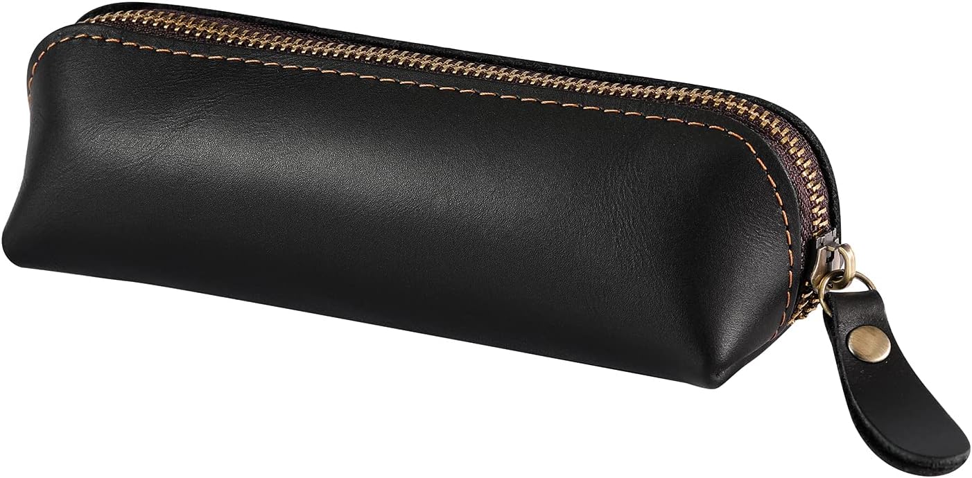 Exquisite Workmanship:The slim pen pouch is made of high-quality top cow leather by hand,and the top is designed with zipper closure,which is very smooth to open or seal,and convenient to store.The compact size and light weight make it to be carried easily into most any bag with you