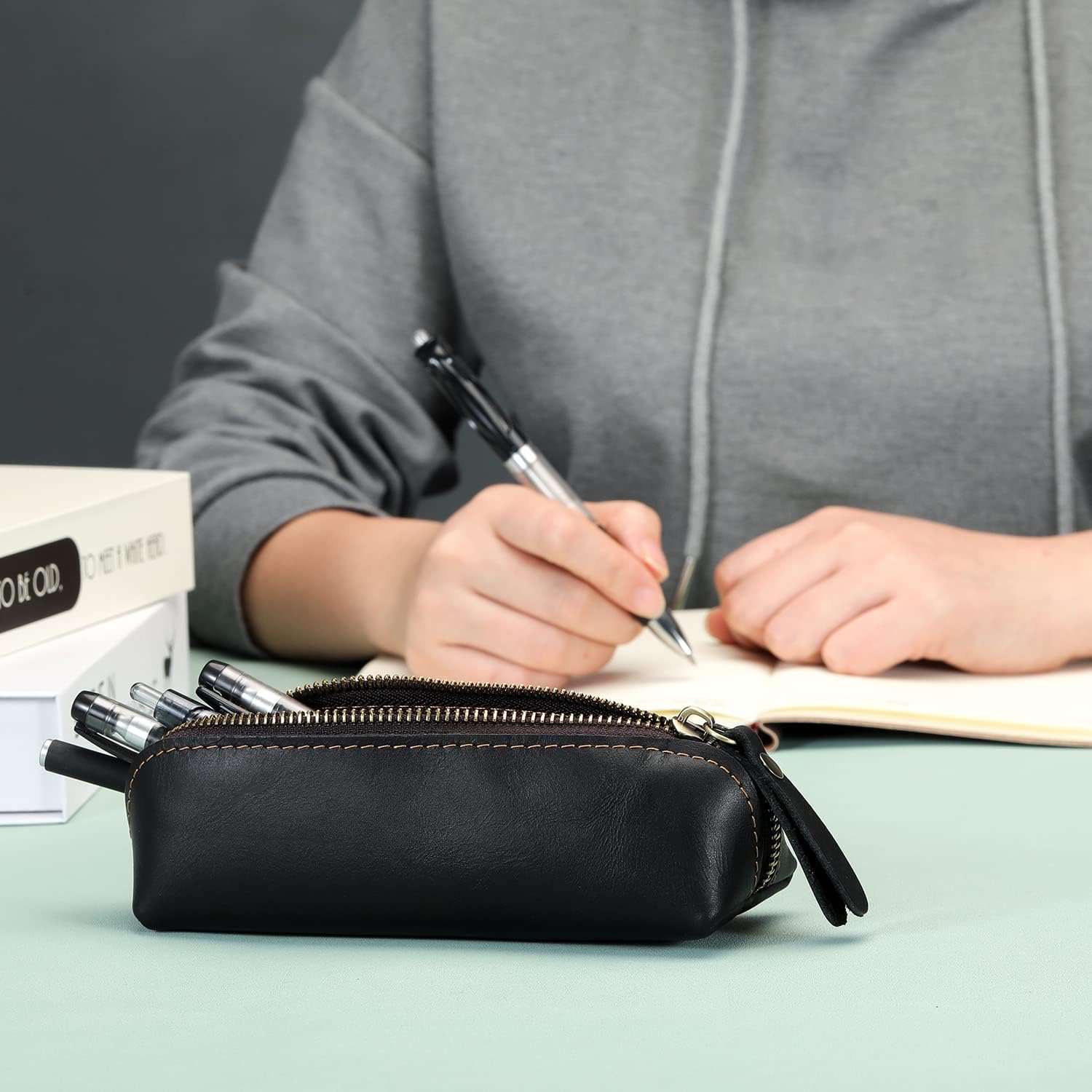 Widely Applicable:This simple yet stylish pencil case is a must for artists, business travelers,writers and office workers who are serious about their stationary. Helps you to stay organized and support your passion for handwriting wherever you are on business,in the office,at home.And it can also be used as a purse to hold your change