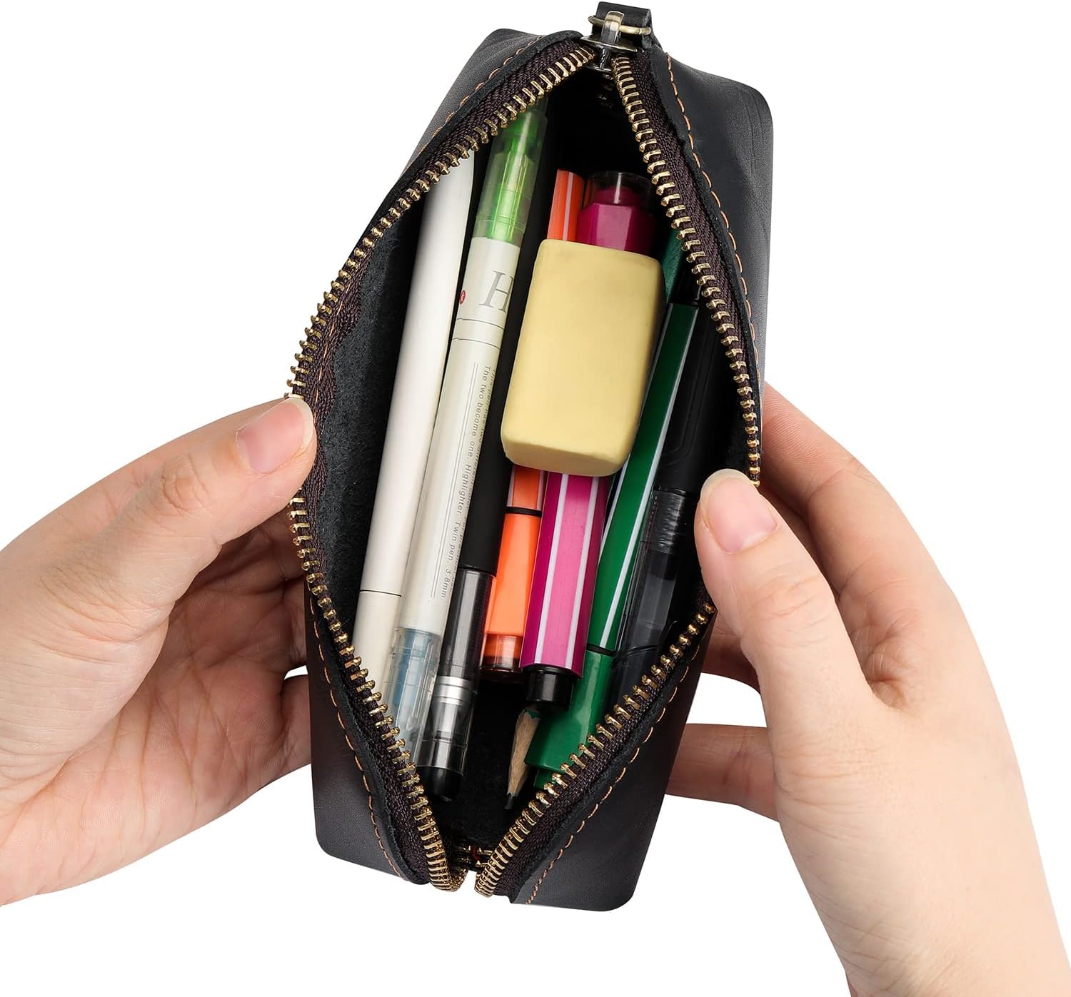 Large Capacity:15-20 pens can be loaded.You can use this pencil bag to hold lipstick,eyebrow pencil,tool knife,post-it note,fountain pen,pencil,paintbrush,marker,cosmetics,scissors,rubber,glue,ruler,key,sunscreen,glasses,change,coins,etc