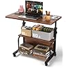 Portable Rolling Desk on Wheels Adjustable Height Desks for Small Spaces, 32" Computer Desk with Storage Shelves for Home Office Rustic