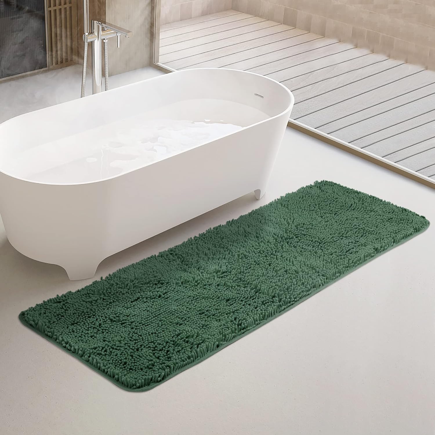 Yeaban Bathroom Runner Rug 24 x 60 Inch – Thick Chenille Long Bath Mat | Absorbent and Washable Extra Large Bath Rug Non-Slip, Plush Runner Rug for Bathroom, Shower, Sink - (Dark Green)