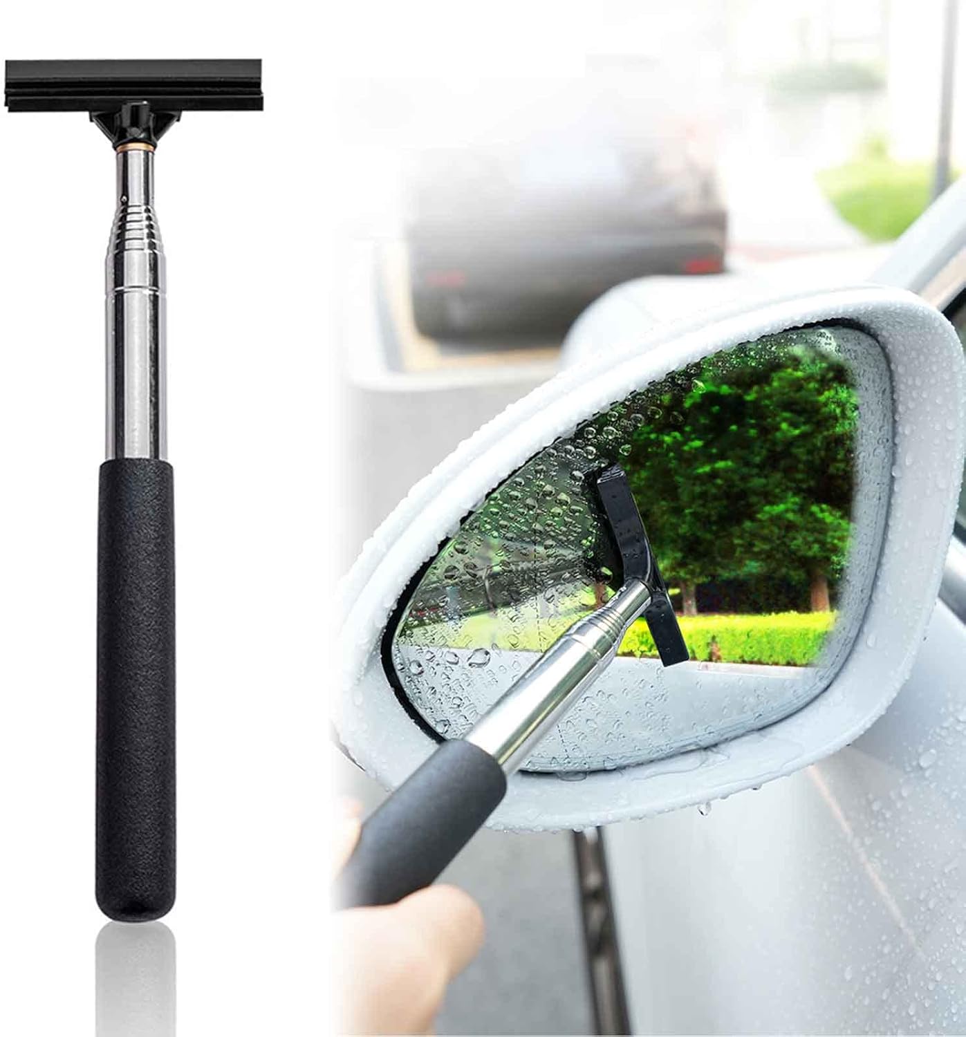 【RETRACTABLE DESIGN】The car rearview mirror squeegee with retractable design, maximum length is up to 89cm/35inch, no need to get off the car, you can easily clear the rain on the rearview mirrors on both sides.