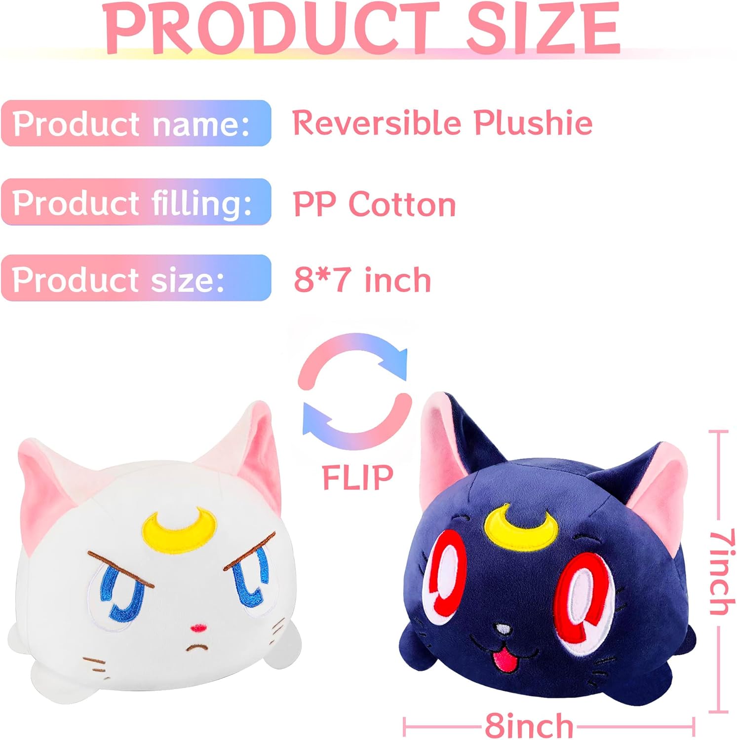 8'' Cute Cat Reversible Stuffed Plush Toys, Cartoon Anime Stuffed Animal Plushie Double-Sided Flip Plush Doll Birthday Gift for Kids Boys Girls