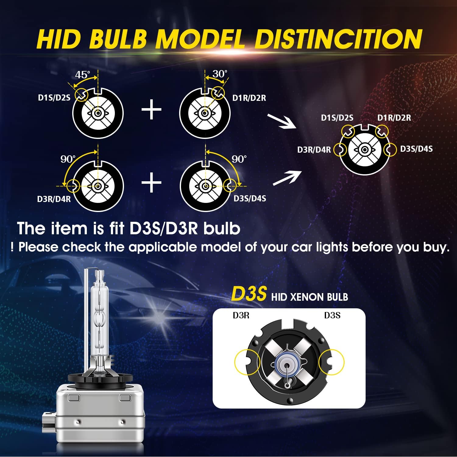 [WARM TIPS] -- D3S headlight bulbs are suitable for more than 98.8% of vehicles. Please confirm your car's applicable xenon bulb model before you buy, either by checking the stock bulb or by referring to the owner's manual. (If the xenon bulb appears to go out after a few seconds of brightness after installation, it may be that the bulb model selected does not match, and you can always contact us for an answer.)