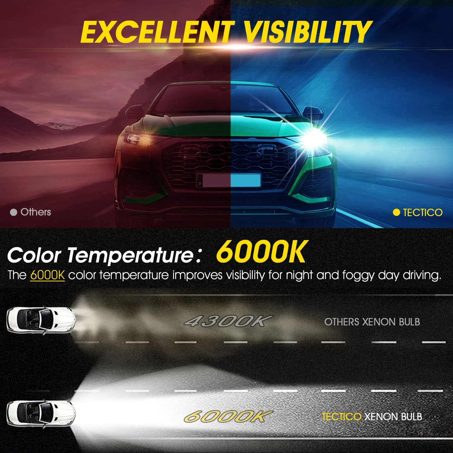 TECTICO D3S Xenon HID Headlight Bulbs, 6000K 35W Cool White High/Low Beam, 400% Enhanced Brightness,85122UB 66240 66040 Replacement Metal Stents Base For 12V car Pack of 2