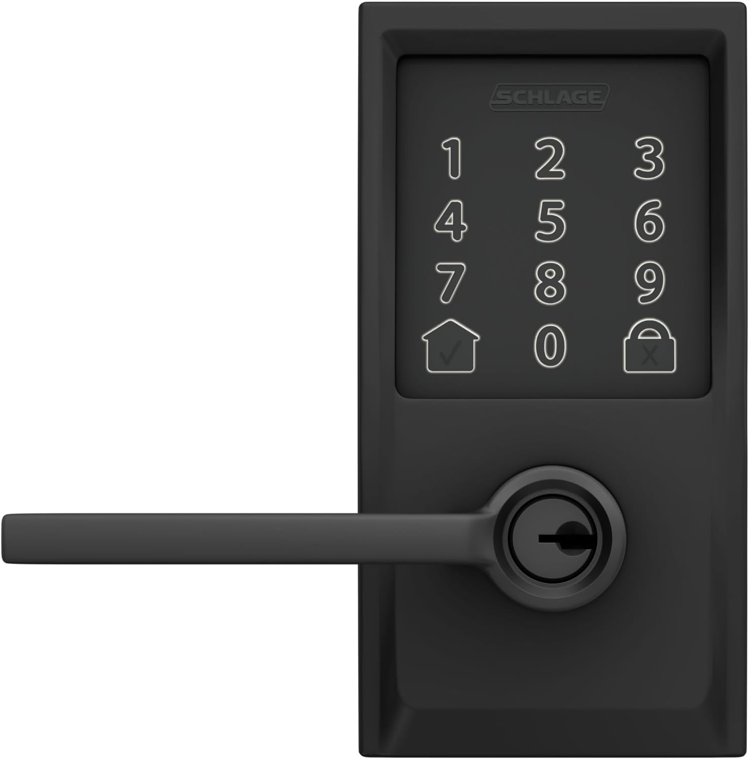 Schlage FE789WBCEN622LAT Encode Century WiFi Latitude Lever Smart Keyless Entry Touchscreen Door Lock, Matte Black