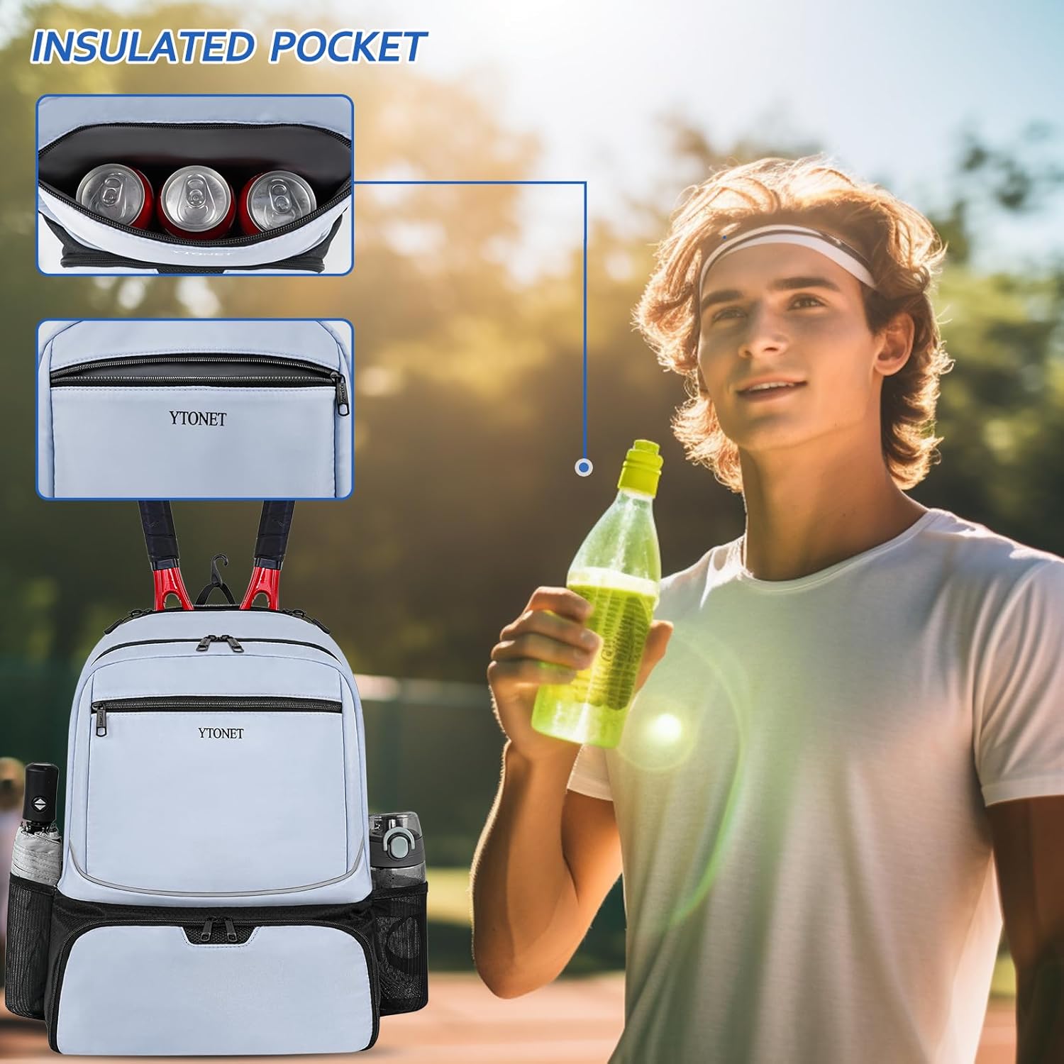 Ytonet Tennis Bag Tennis Backpack for Women Men 2 Rackets with Insulated Pocket Ventilated Shoe Compartment