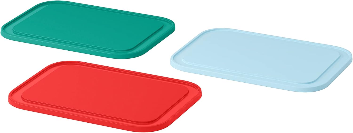 Key featuresCan be used as a chopping board, a lid or become a perfect cheese dome together with the food containers in the IKEA 365+ series.Easy to clean, handle and store, these chopping boards can also be used as lids. Choose a lid colour based on the food. Maybe red for meat, green for vegetables and blue for dry foods?