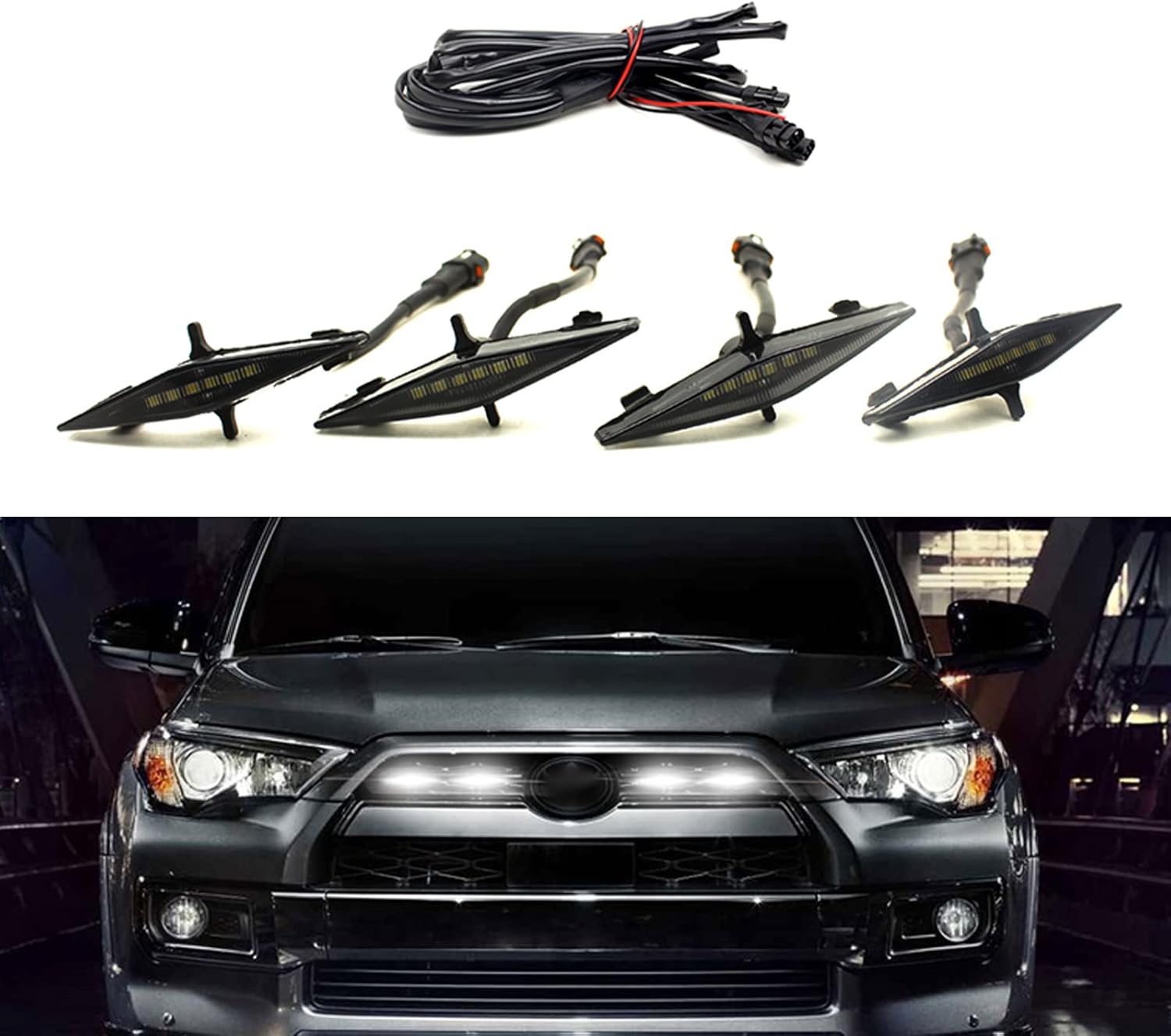 4 PCS White LED Lights, Grille Raptor Lamps Car Accessories with Harness and Fuse Compatible with 2014-2022 Toyota 4Runner TRD Pro Grille (White)