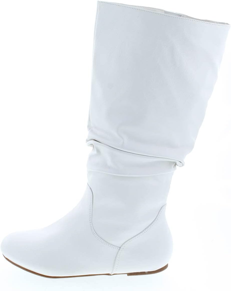 TOP Moda Data-1 Women's Shoes Cute & Comfort Round Toe Flat Heel Slouchy Mid Calf Boot