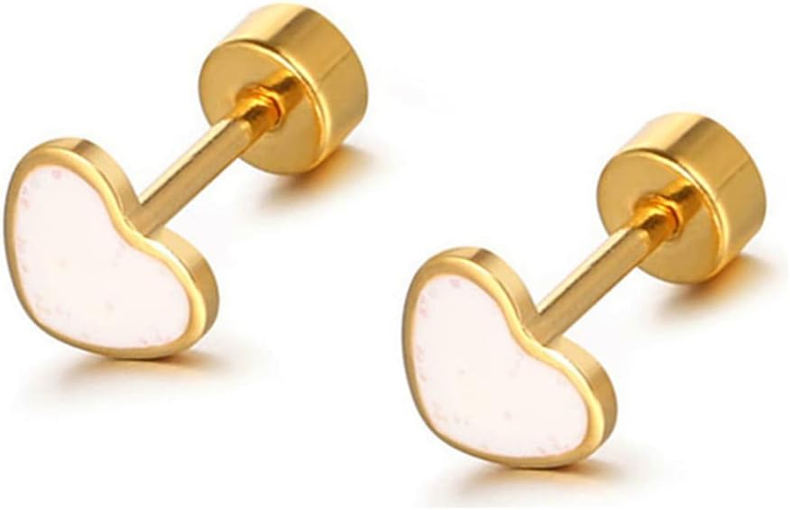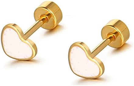 18g Titanium Heart Love Earrings for Women Girls Stainless Steel 14k Gold Plated Hypoallergenic Cute Tiny Sequins Stud Cartilage Tragus Screw Back Post Piercing Sensitive Ear