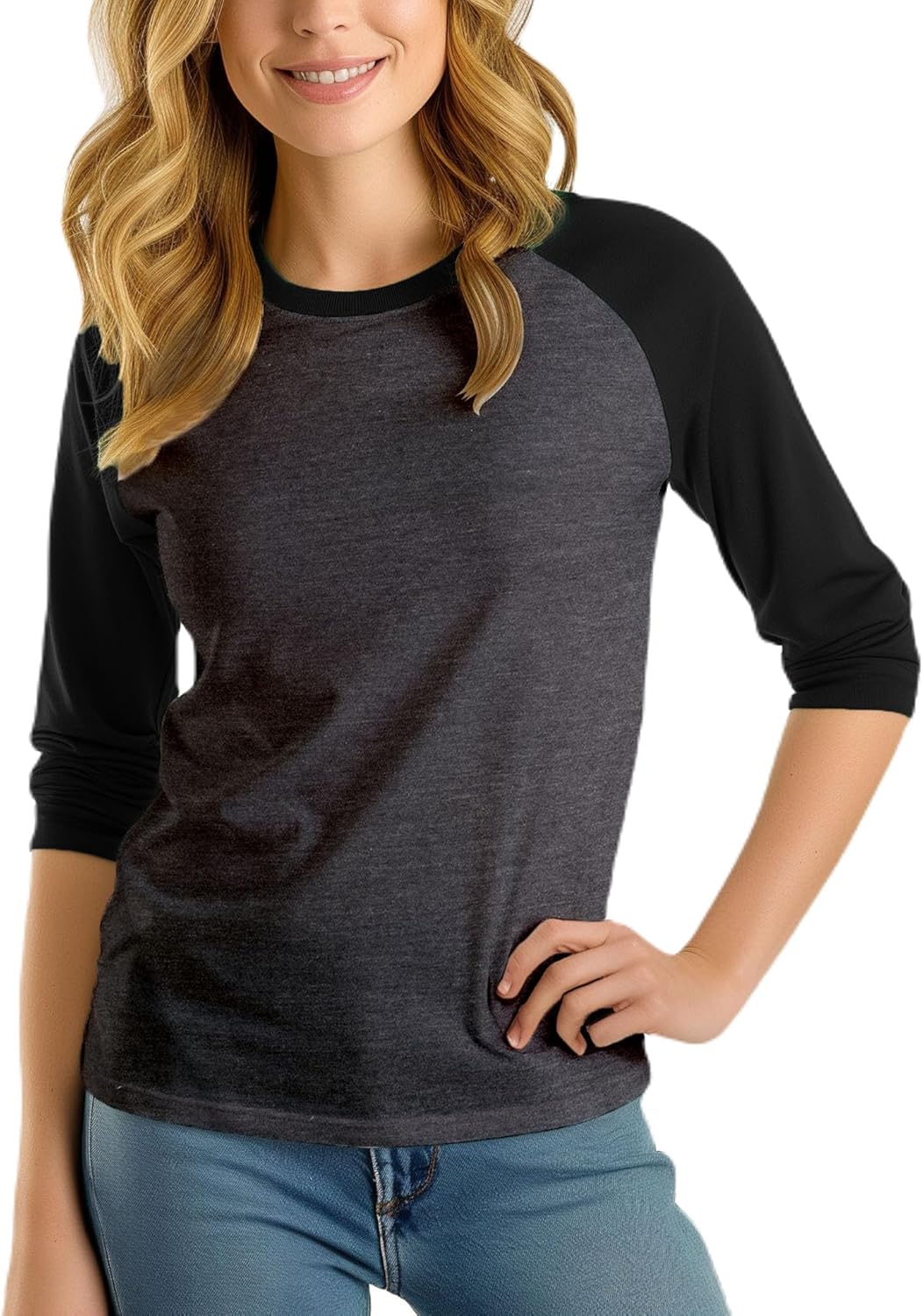 Decrum Baseball Shirt Women - Casual Fashion 3/4 Length Sleeve Womens Raglan Tops