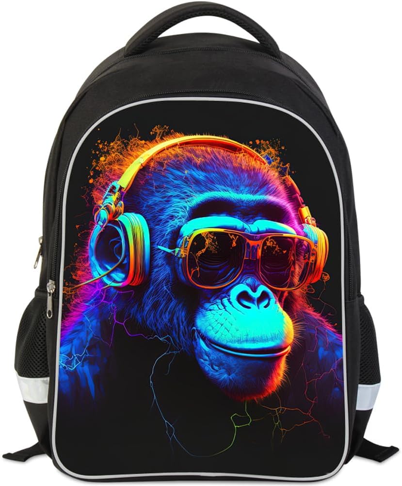 Kids Backpack, 3D Reflective Cartoon, 600D Polyester & Dual Zippers, 17" Bookbag with Ergonomic Design for boys & girls age 6-18, Gorilla Space Style for school Children Kids