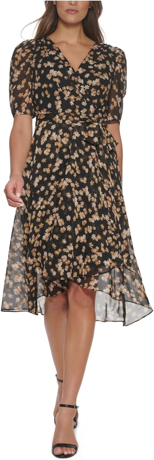 TOMMY HILFIGER Women's V Neck Faux Wrap Midi Dress