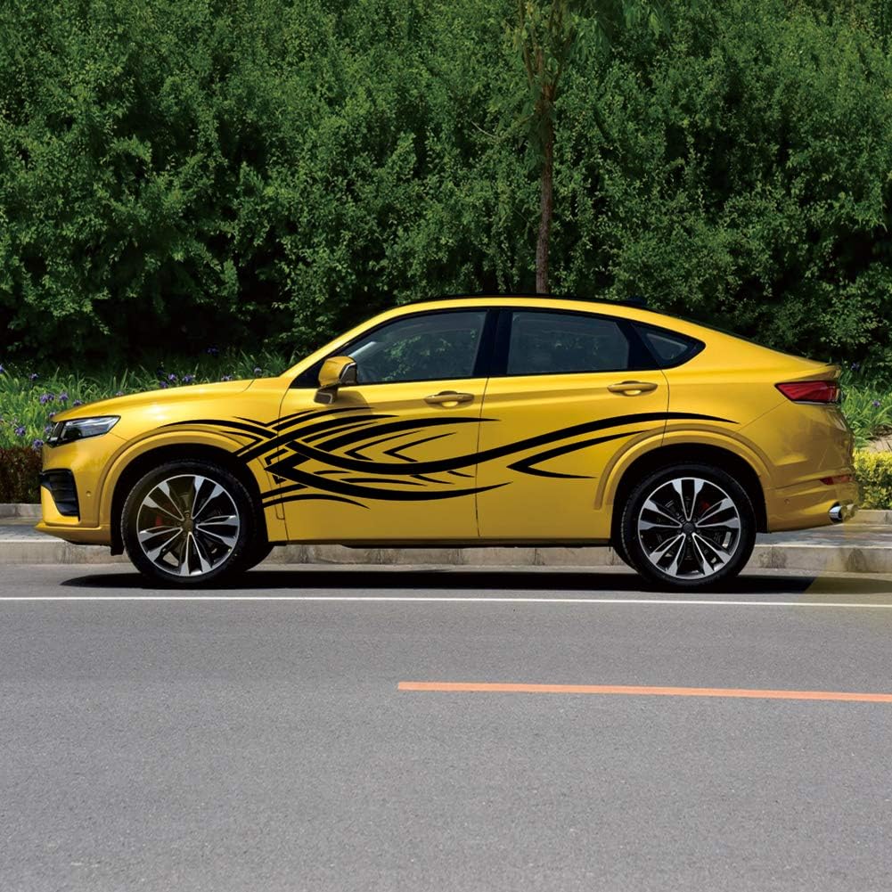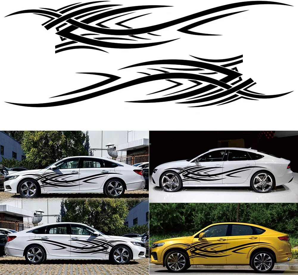 2Pcs Universal Car Body Side Decals Flame Sport Racing Stickers Auto Vinyl Self-Adhesive Sticker DIY Stripe Decal Decoration Accessories for Car,Truck,SUV,Jeep,Off-Road Vechicles (Black)