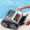 Smart Navigation - Engineered with gyroscope mobility system, the automatic pool vacuum plans and maintains a methodical cleaning path to efficiently clean every spot. Its tank-type track wheels enable it to achieve a relentlessly clean, tackle any pool terrain, climb over obstacles, and won't get stuck.