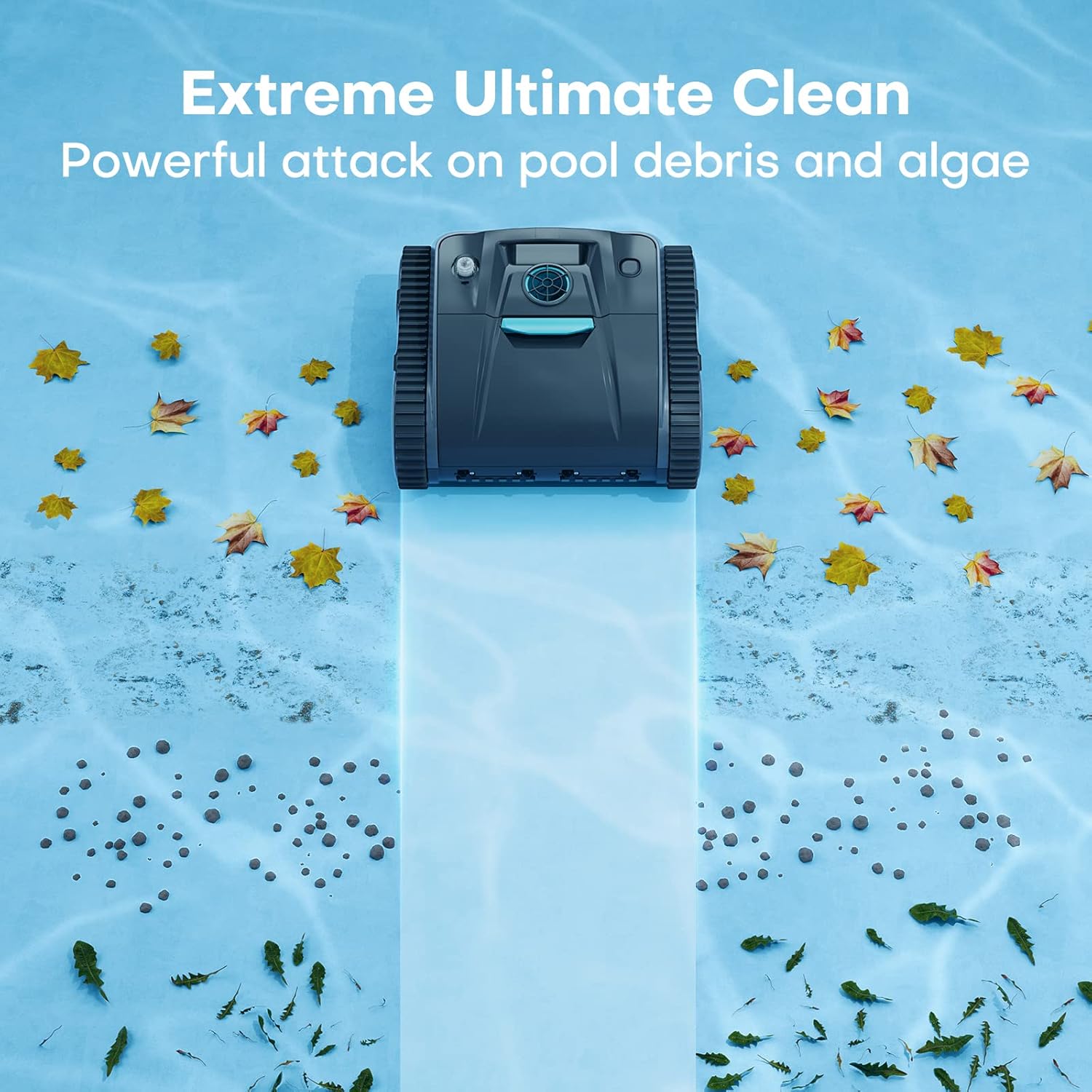 Powerful Triple Motor - The improved triple motor provides exceptional performance for climbing and active scrubbing. Its unparalleled suction power picks up debris as large as leaves and acorns, as well as small particles such as sand and algae, leaving no place for trash to hide.