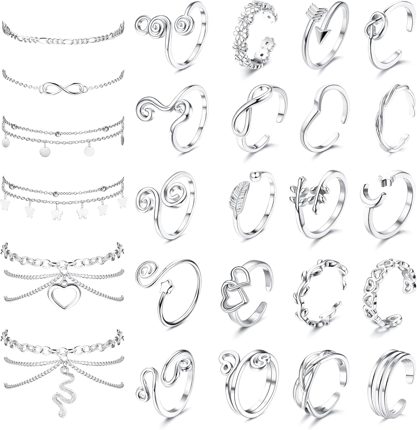 ORAZIO Toe Rings and Ankle Bracelets for Women Silver Rose Gold Plated Anklet Toe Rings Cute Layered Anklets Open Tail Rings Adjustable Beach Foot Jewelry for Summer