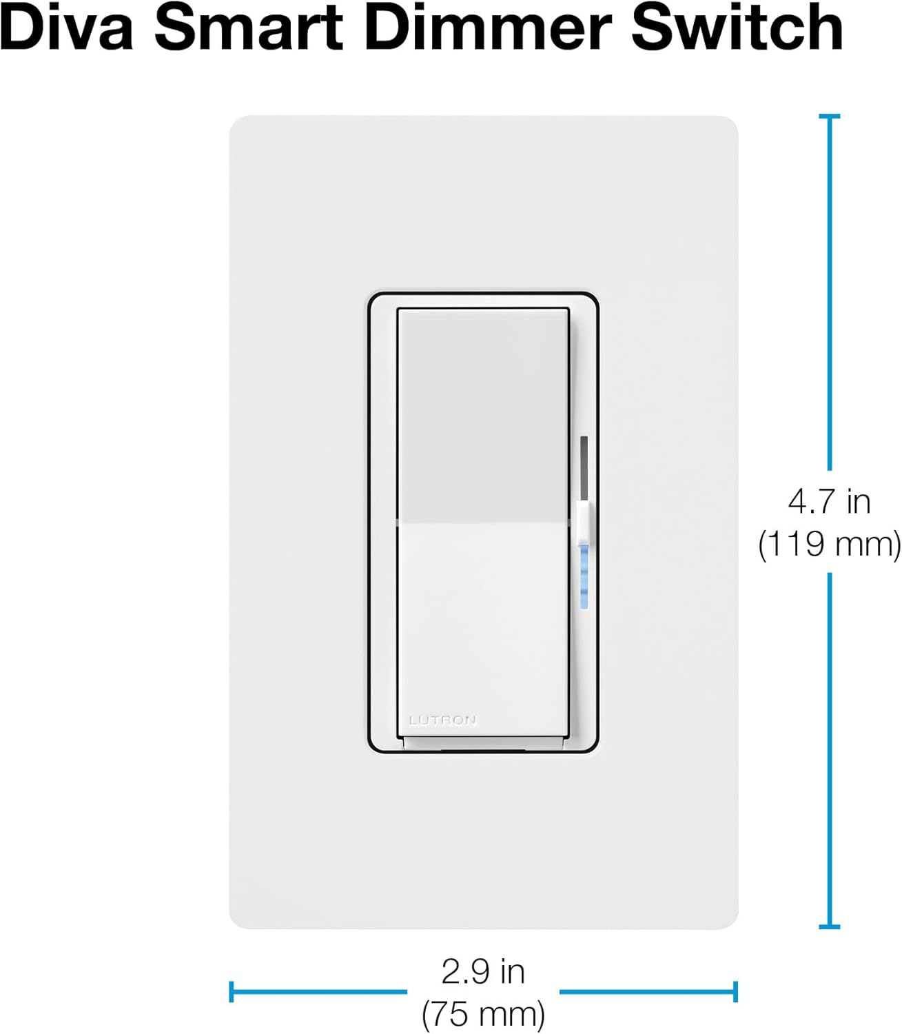 RECOGNIZED AESTHETIC: Lutron's #1 dimmer is now smart. Features the well-loved design of the Lutron Diva LED+ dimmers, and matches existing paddle style dimmer and switches for a classic look throughout any home