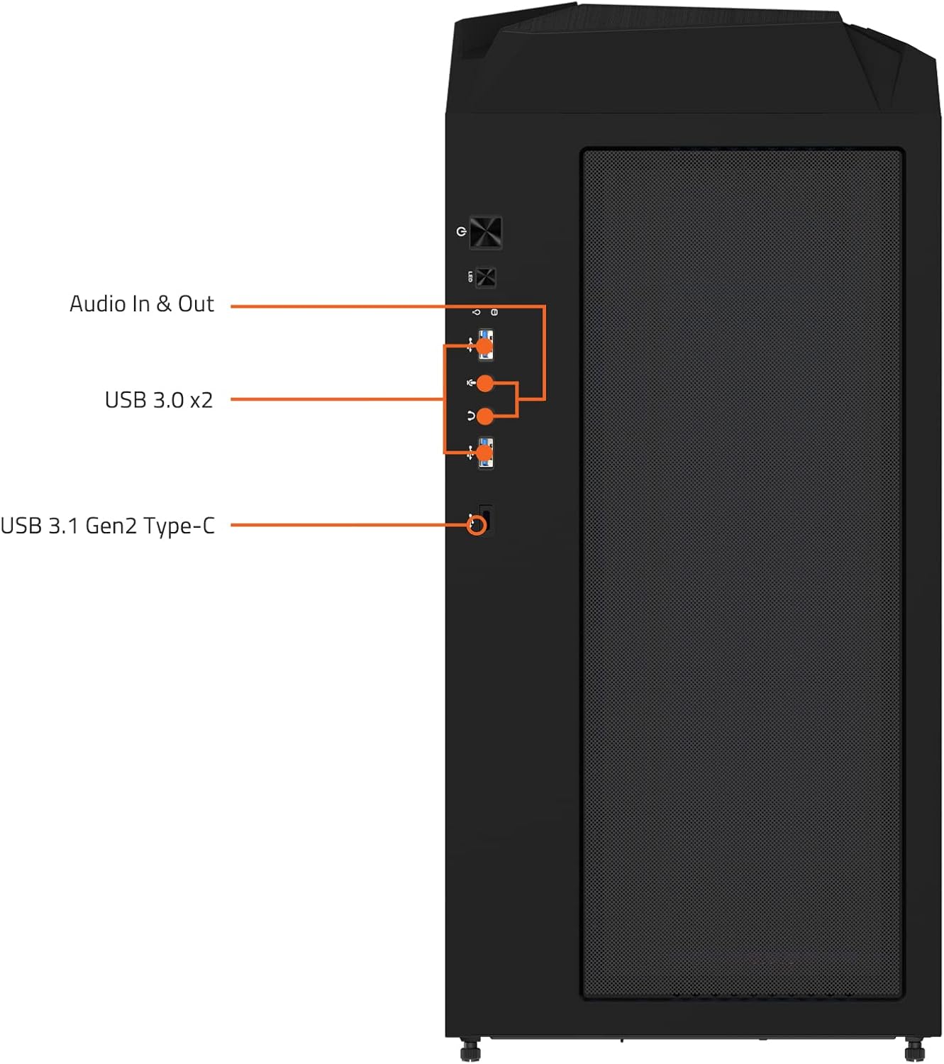 Front I/O: USB 3.1 Gen-2 Type-C x1, USB 3.0 x2, LED Switch, Audio In & Out