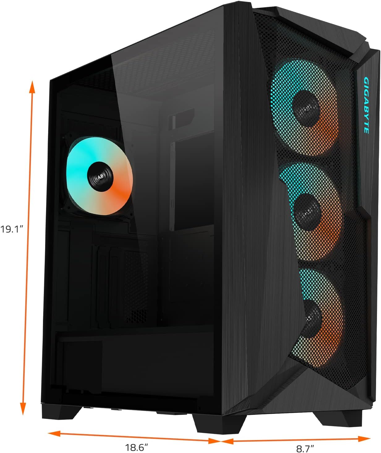 GIGABYTE C301 Glass - Black Mid Tower PC Gaming Case, Tempered Glass, USB Type-C, 4X ARBG Fans Included (GB-C301G)