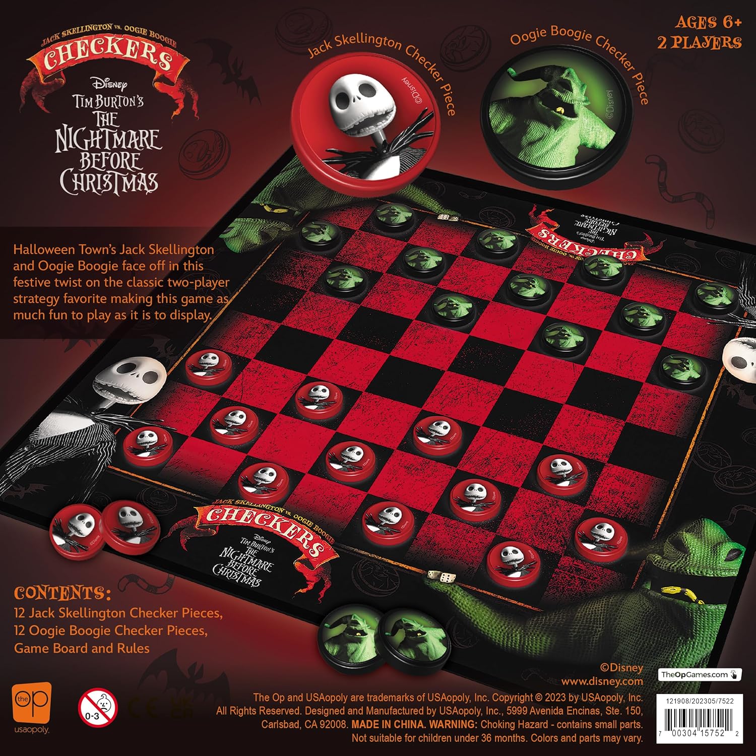 Celebra el clásico de animación de Tim Burton La Noche de Halloween con este juego de damas coleccionable que presenta a Jack Skellington contra Oogie Boogie