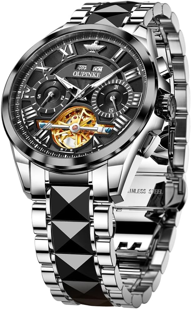 OUPINKE Watches for Men Automatic Skeleton Self Winding Dress Wrist WatchBusiness Waterproof Luminous Tungsten…