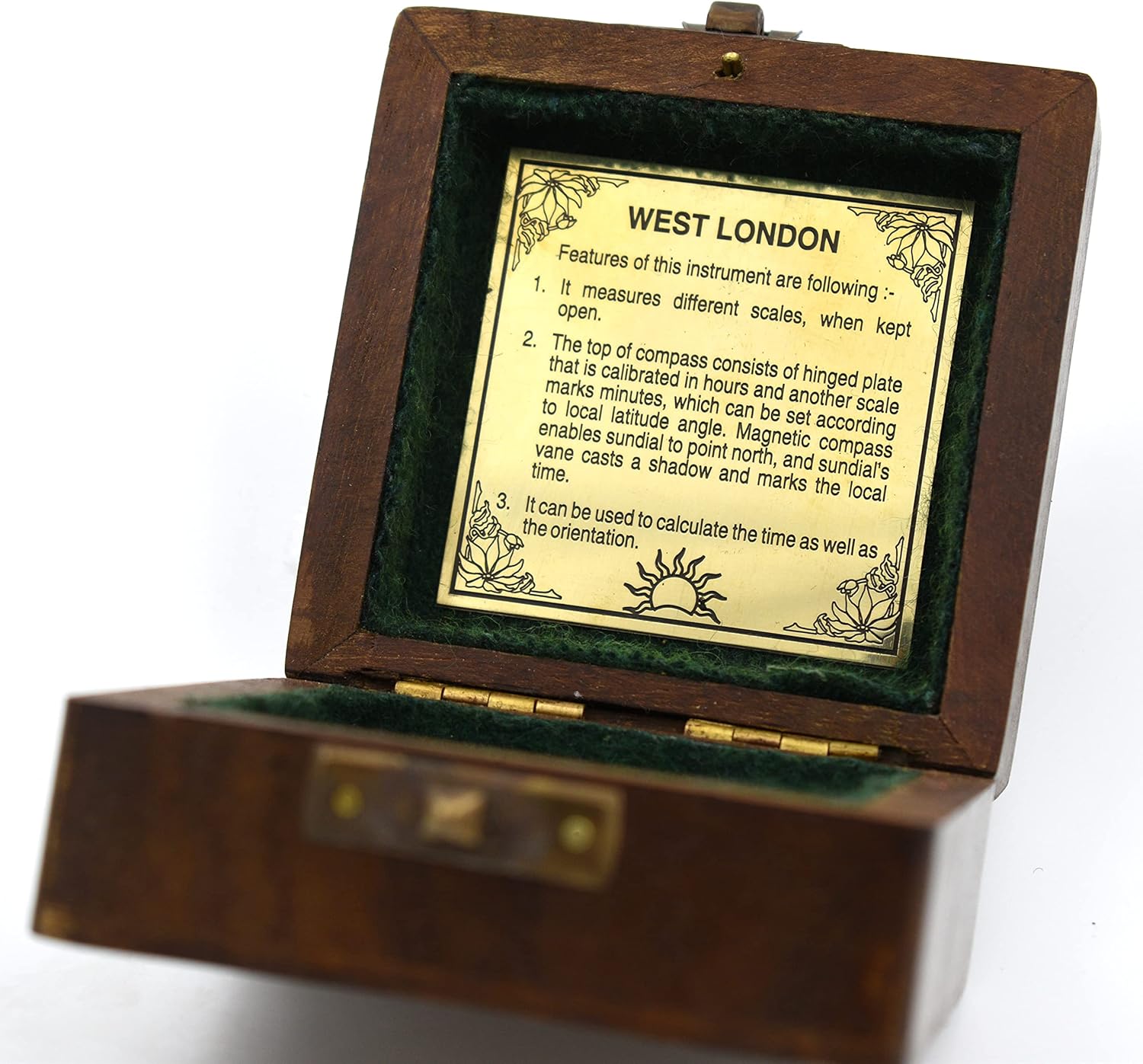 The compass as well as the sundial are functional. It can be used for basic measurements. The vintage compass makes great wedding anniversary gifts for him. If you are looking a unique anniversary gift for men, this antiue compass is the one.