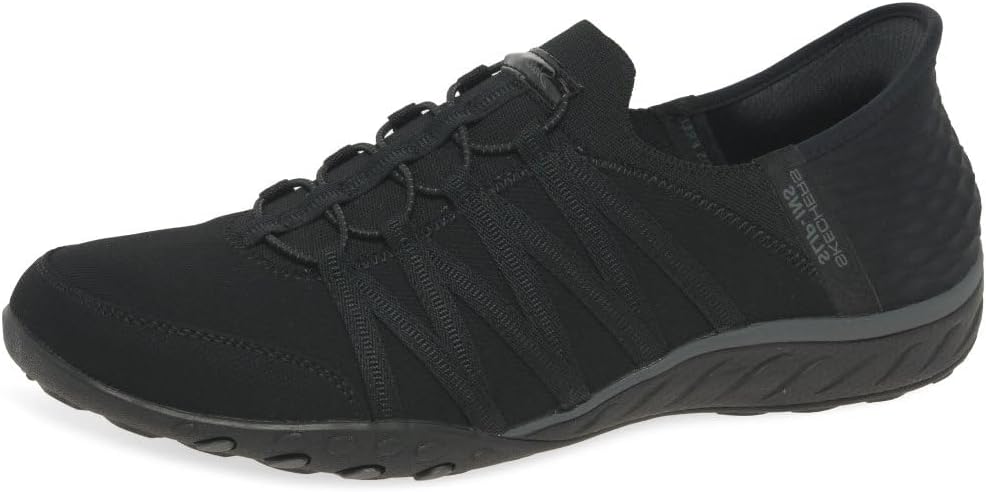 Step into effortless style and comfort with the Skechers Slip-ins Relaxed Fit: Breathe-Easy - Roll-With-Me slip on shoes for women. These casual slip on sneakers feature a soft knit mesh upper with stretchy bungee lacing for a hands-free, slip-on fit. The cushioned Skechers Air-Cooled Memory Foam insole with Heel Pillow technology delivers responsive comfort, while the shock-absorbing midsole provides lightweight cushioning. Designed for easy on-and-off wear, these womens slip on shoes are machine washable for effortless care.