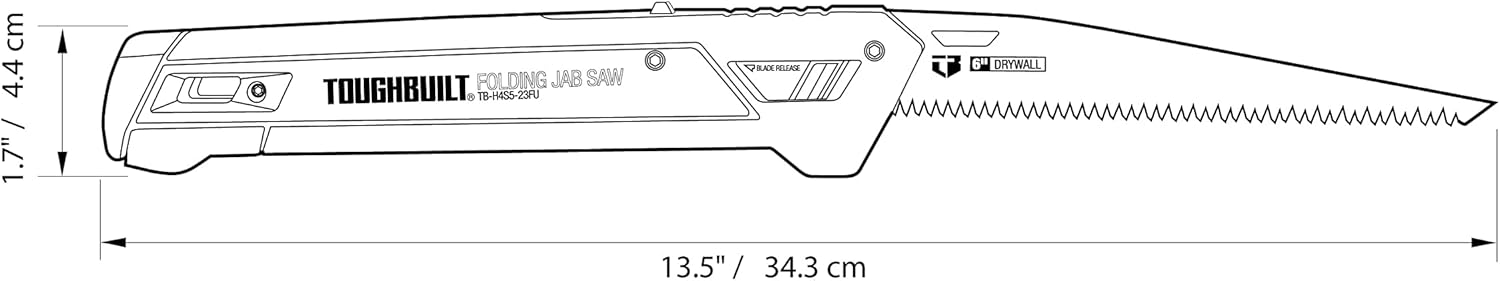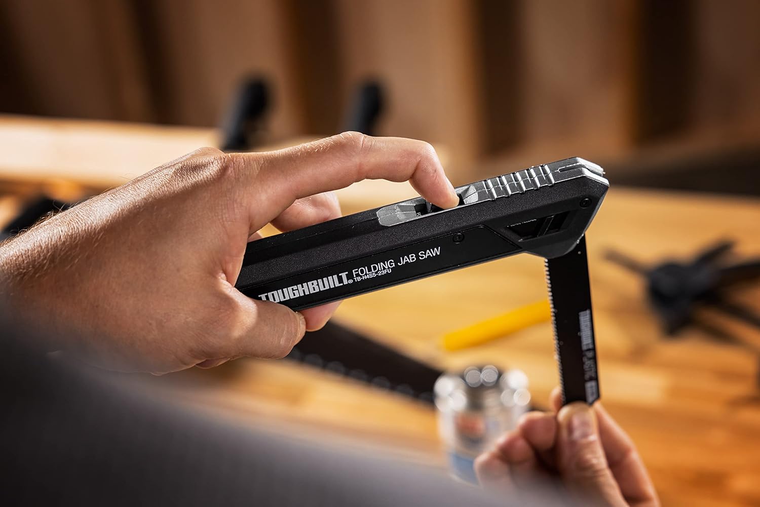 ToughBuilt - Sierra plegable Jab/Utilidad, hoja para tabique con dientes de triple filo (8 TPI) para un corte más rápido, + 4 hojas, mecanismo de plegado rápido y liberación de hoja - TB-H4S5-23FU