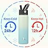 Crafted from food-grade 18/8 stainless steel, the double walled insulated bottle keep your drinks hot for 12 hours and cold for 24 hours.Say goodbye to lukewarm drinks and enjoy refreshing sips of hot or cold beverages whenever you need them