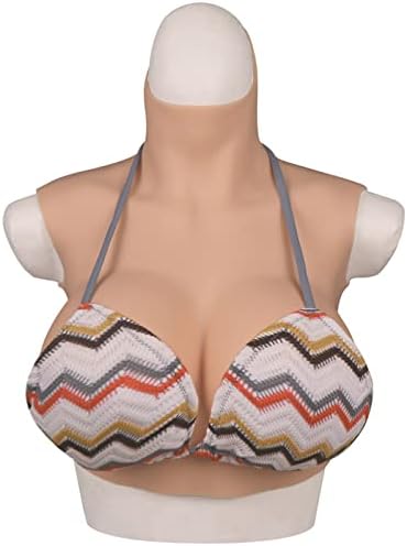 EQAIWUJIE Breastplate Silicone Breast Form for Crossdresser Realistic Fake Boobs (Tan, C Cup Silicone Filler)