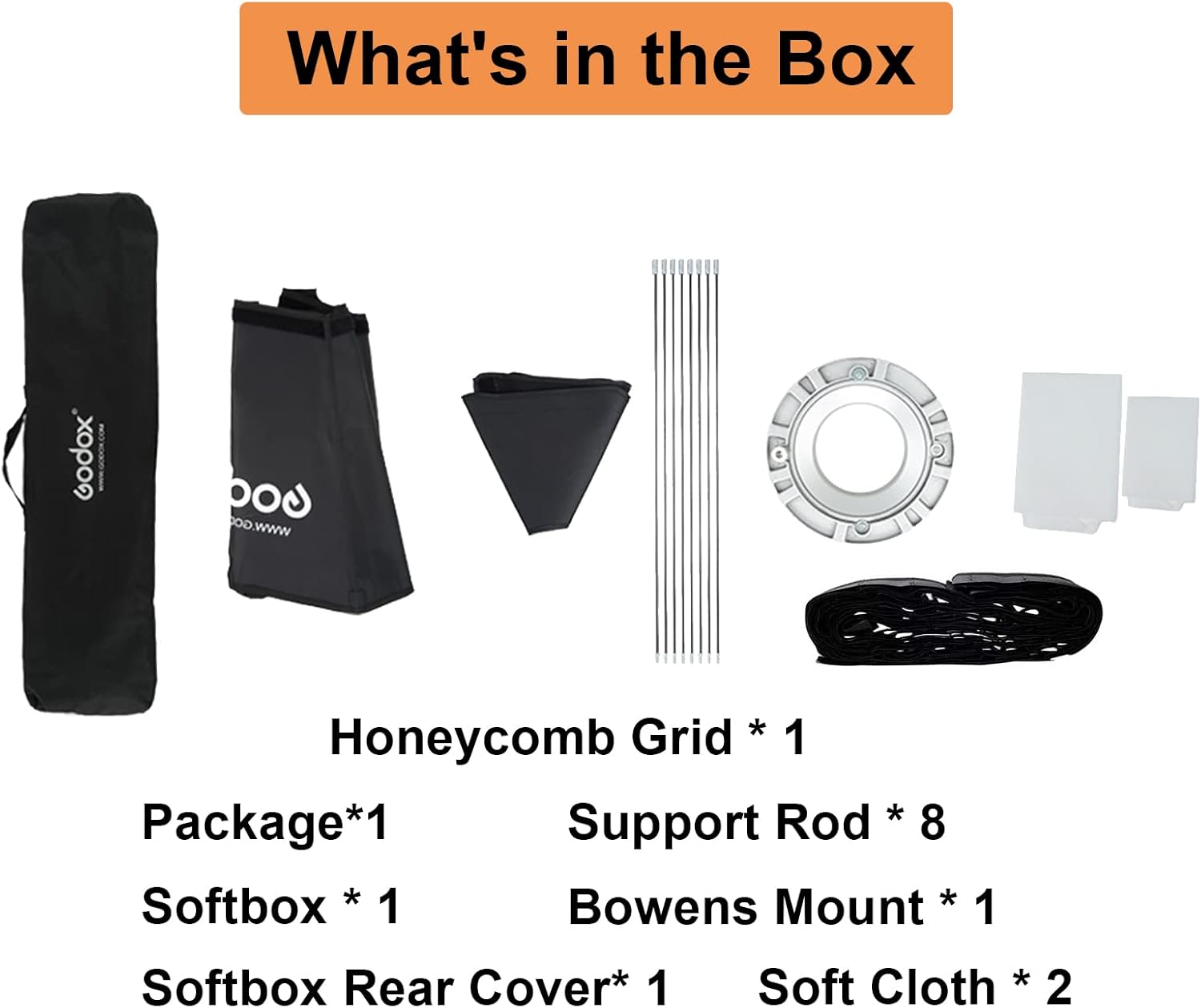 *Remarks: The soft box is equipped with a grid.The strobe head and light stand is not included