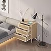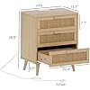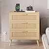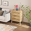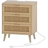 Irontar Rattan Nightstand with Charging Station, Night Stand with 3 Large Rattan Drawers, Accent End Table, Bedside Table with Solid Wooden Legs for Bedroom, Natural BZZ006ME