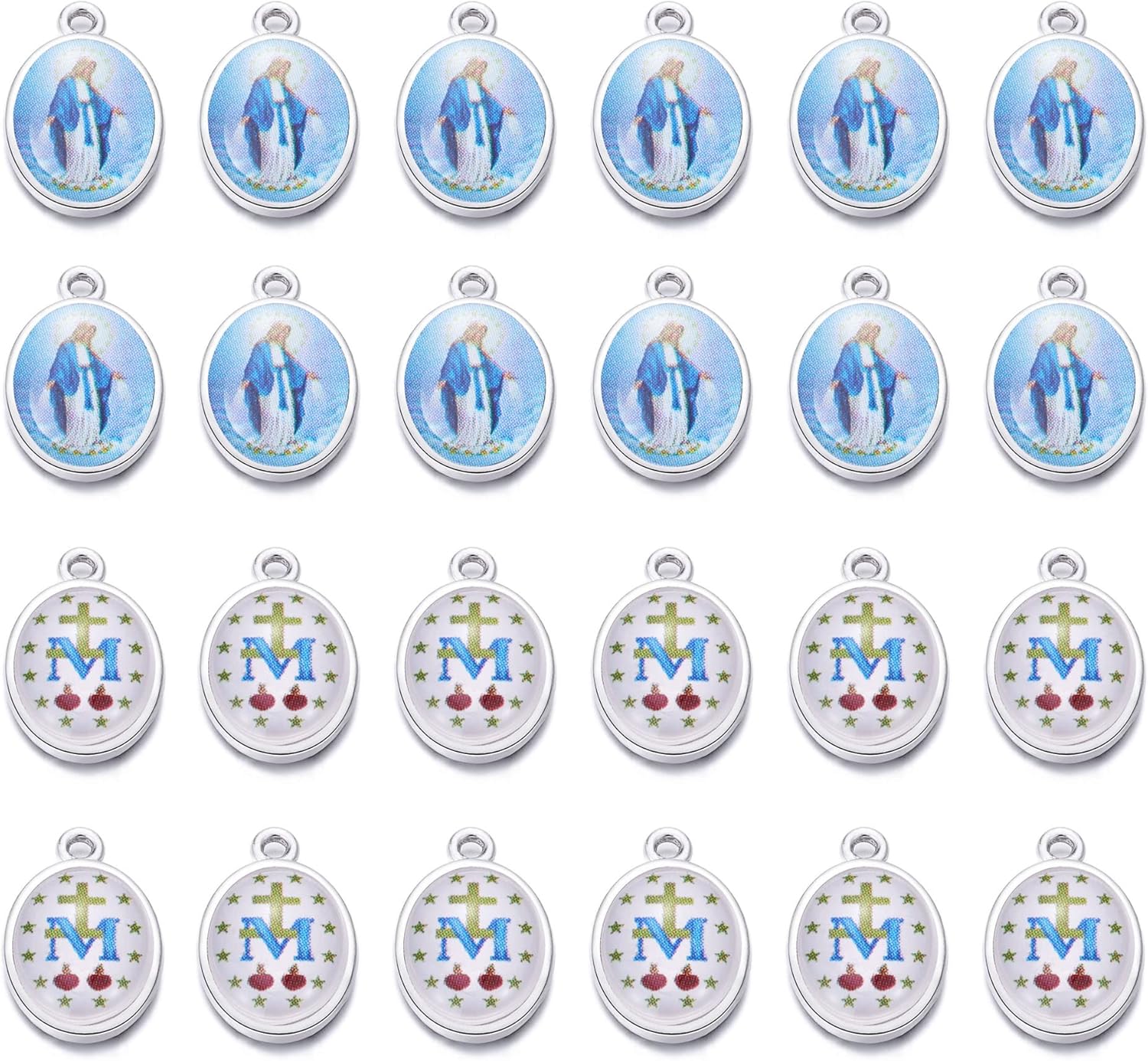 80pcs Our Lady Virgin Mary Crucifix Miraculous Medals Charms Pendant Necklace Bracelet Jewelry Making and Crafting