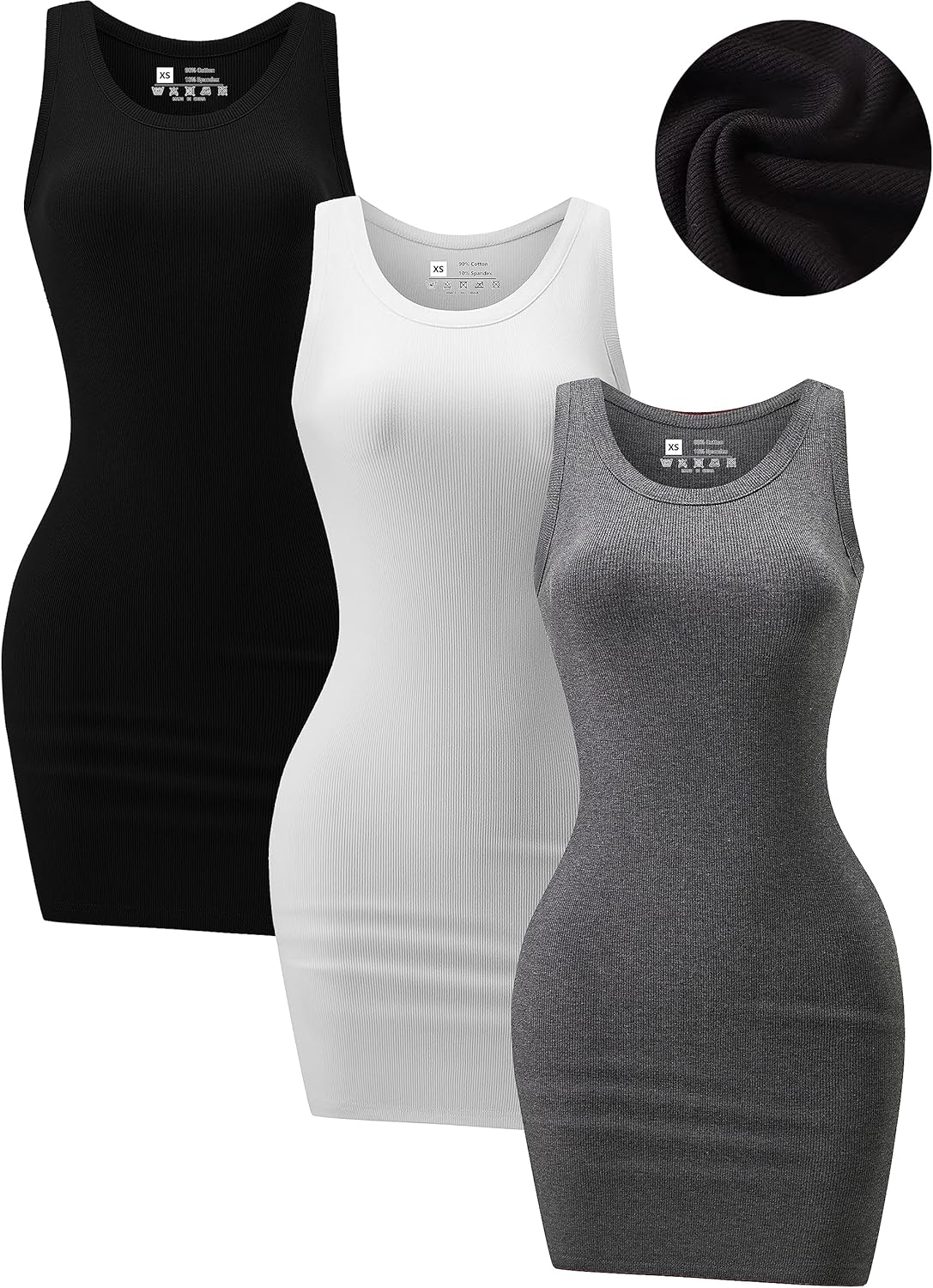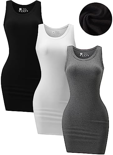 3 Pack Summer Dresses for Women 2025 Ribbed Tank Dress Scoop Neck Sleeveless Sundress Basic Bodycon Mini Dress
