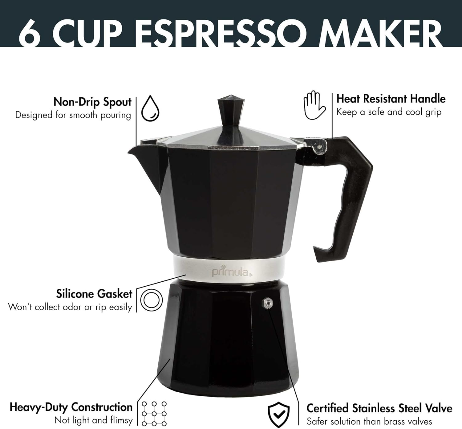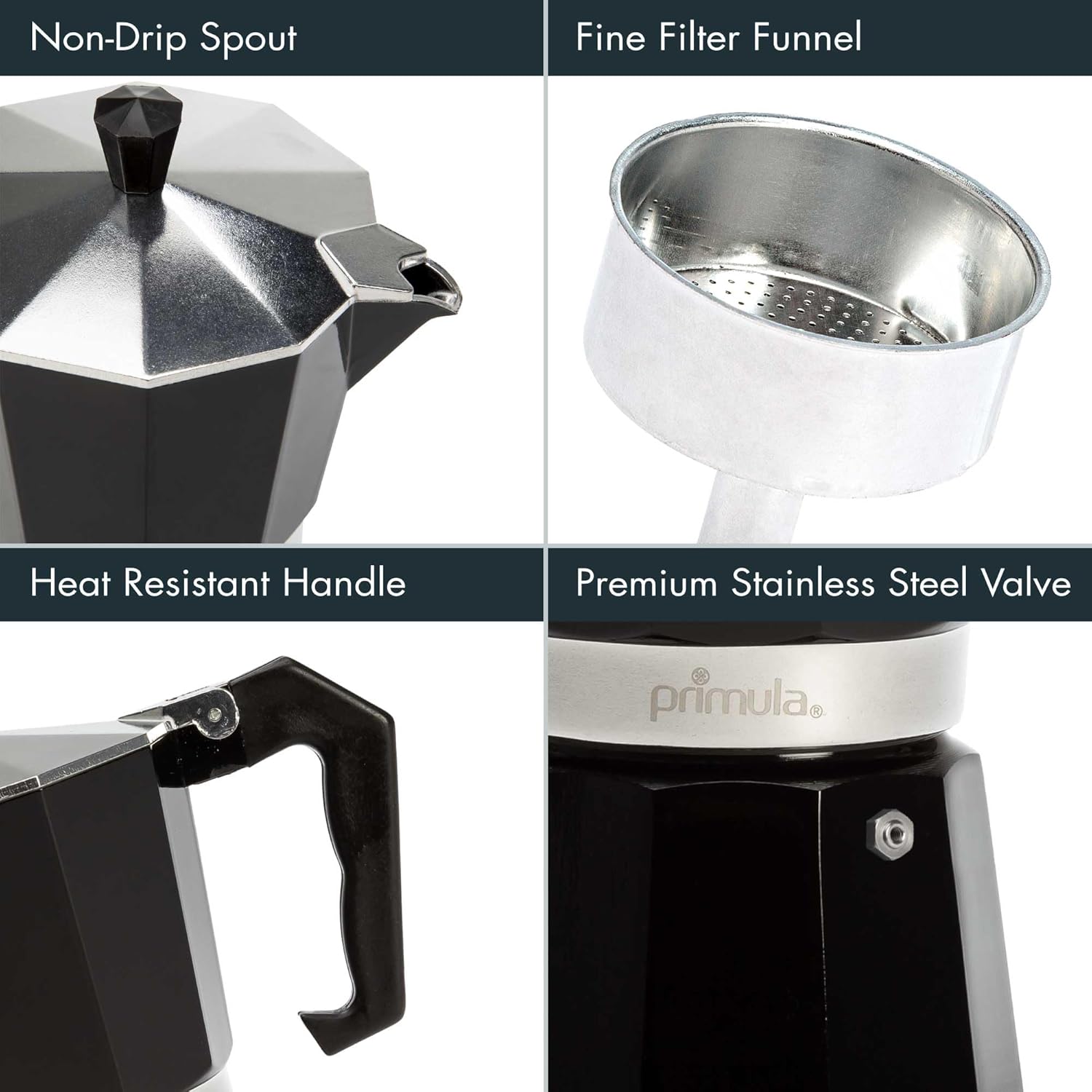 Primula Classic Estufa de Horno Espresso y Cafetera, Moka para Café Italiano y Cubano, Cafetera Greca, Cafeteras, 6 Tazas de Espresso, Negro