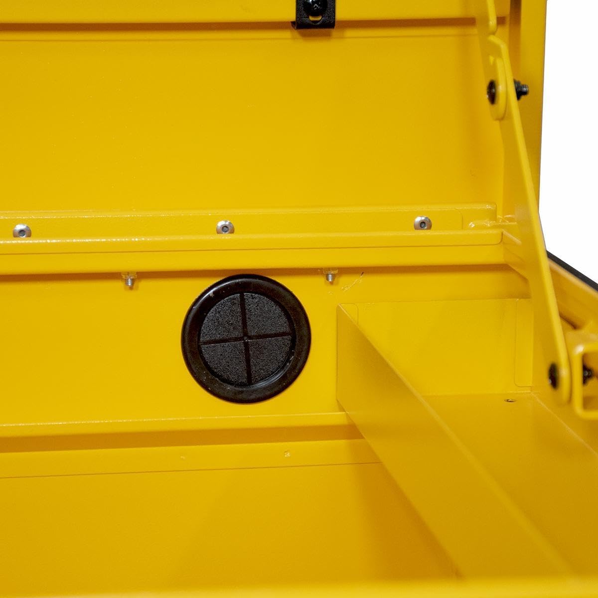 This 32" DeWalt jobsite box is durable and ready to take on harsh conditions with features including heavy duty steel construction, recessed lock enclosures, weather resistant seal, and swing up handles.