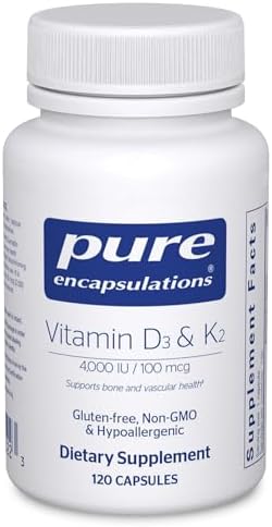 Pure Encapsulations Vitamin D3 & K2 - Apoyo para la Salud Ósea y Vascular - Apoyo para la Función Inmunológica* - Sin Gluten - No OGM - 120 Cápsulas