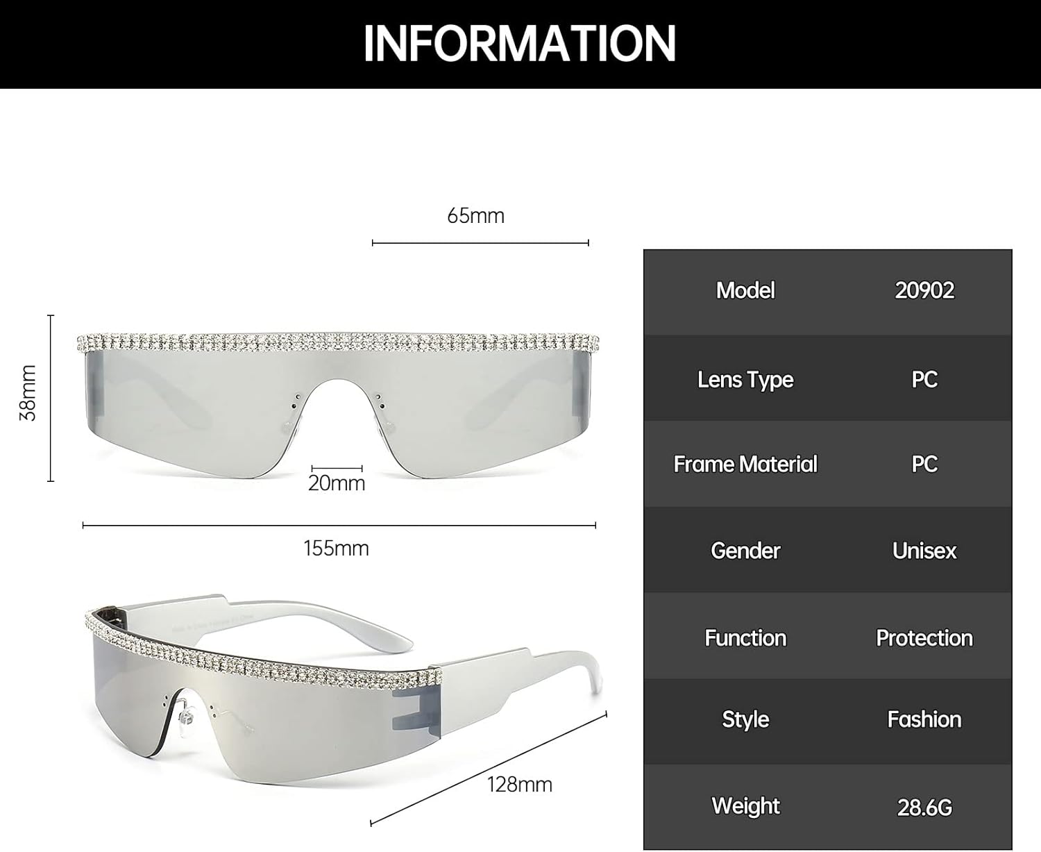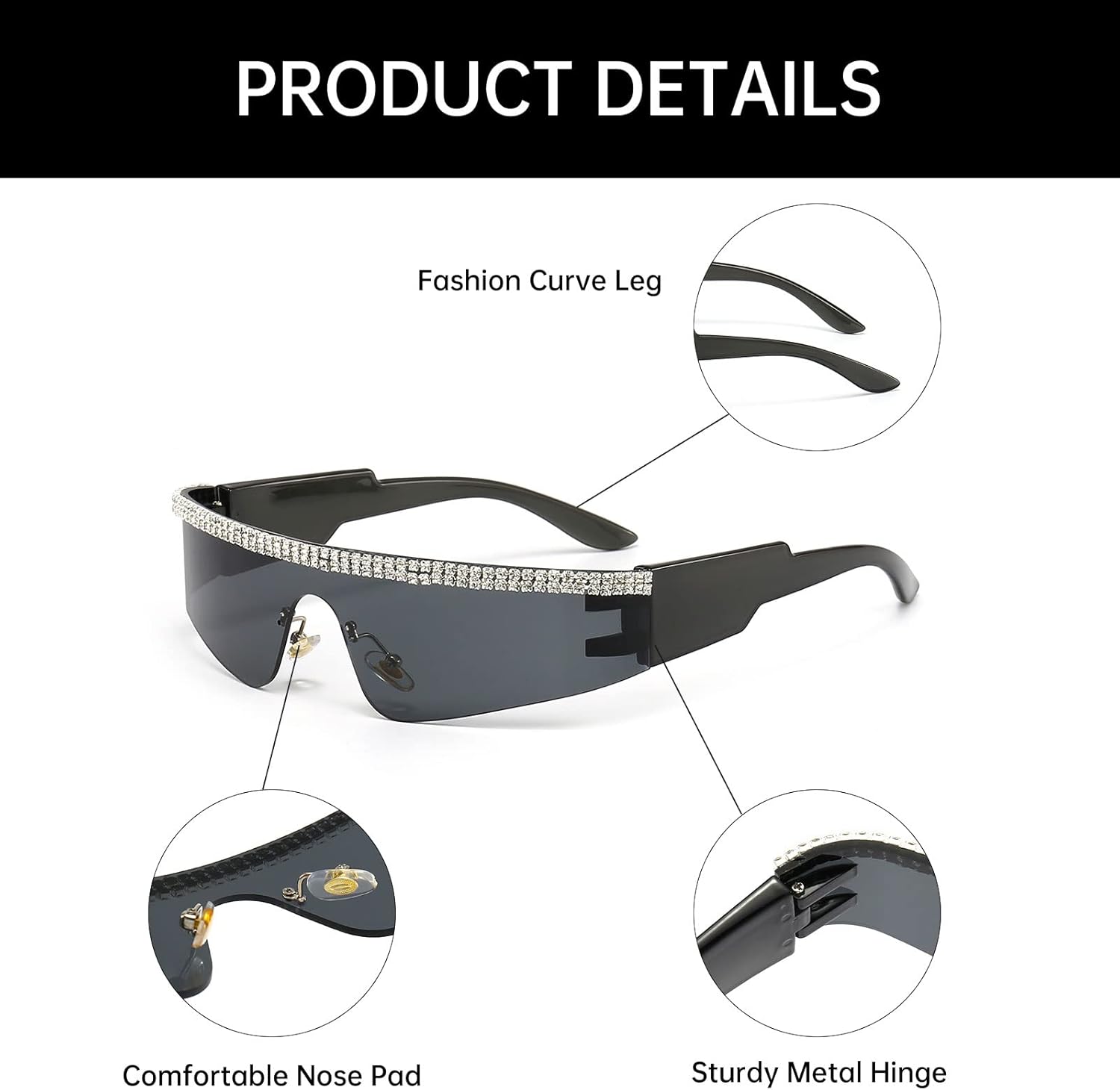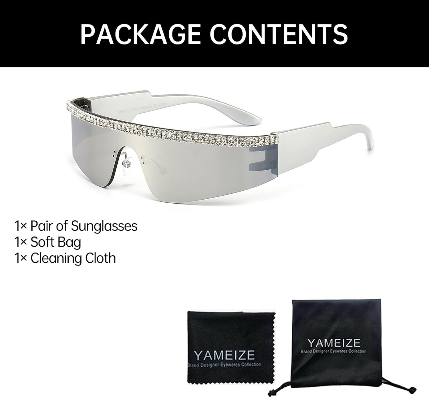 YAMEIZE Y2K Diamond Wrap Around Sunglasses - Rimless Futuristic Shield Frameless Rhinestone bling Sun Glasses for Women Men