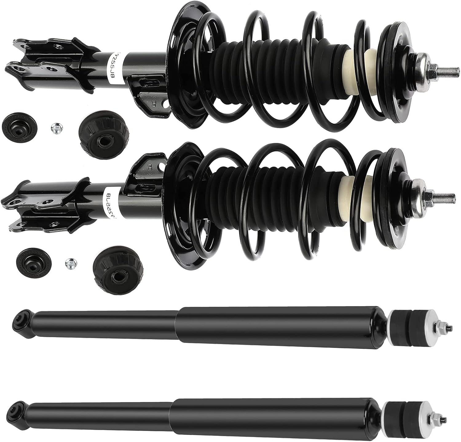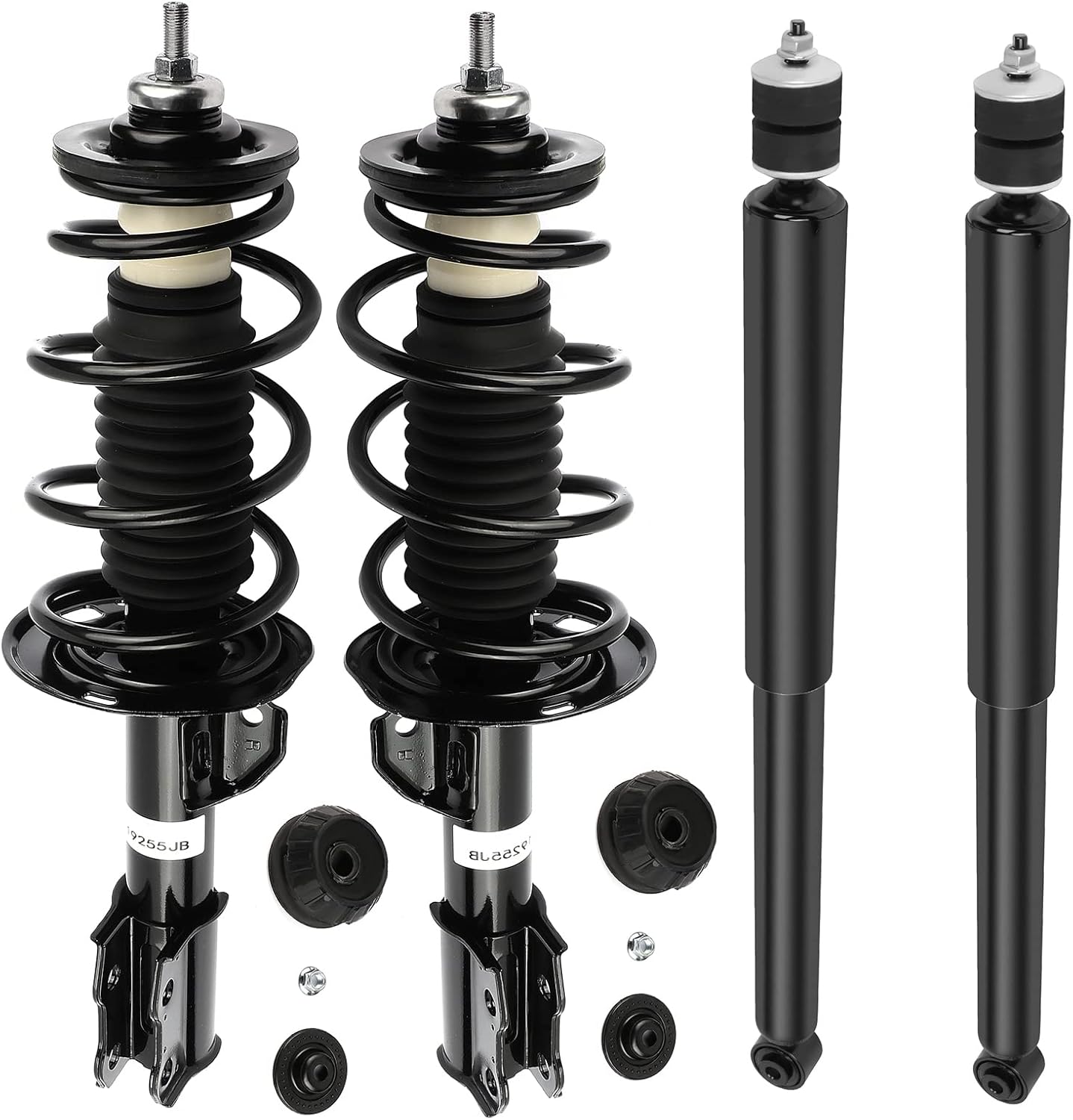 PACKAGE CONTAINS: This package contains 4pcs Front and Rear Pair complete struts and shock absorber.Direct install and does not require a spring compressor for installation