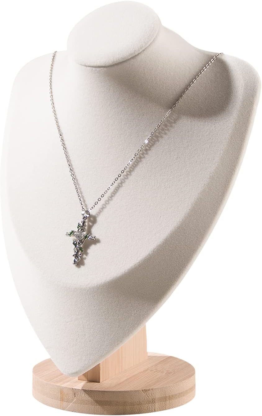 Base de bambú natural y resistente permite un soporte seguro, el suave terciopelo de franela evita que su hermosa joyería se raye y se mantenga en buen estado