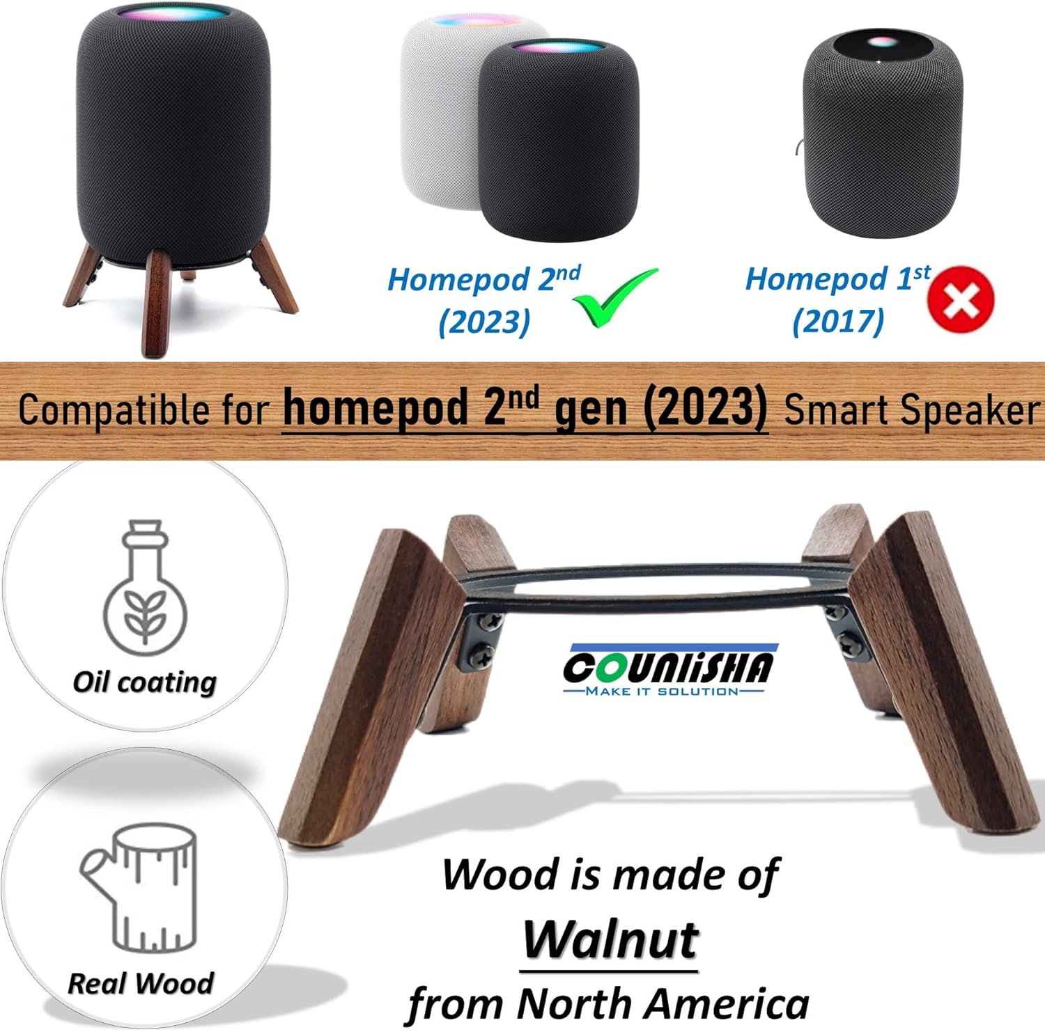 Soporte de madera auténtica para Homepod de segunda generación (lanzado en 2023), soporte de madera con marco de metal para un mejor sonido, soporte robusto y estable con protección antideslizante, altavoz inteligente Apple Home Pod de segunda generación (nogal)