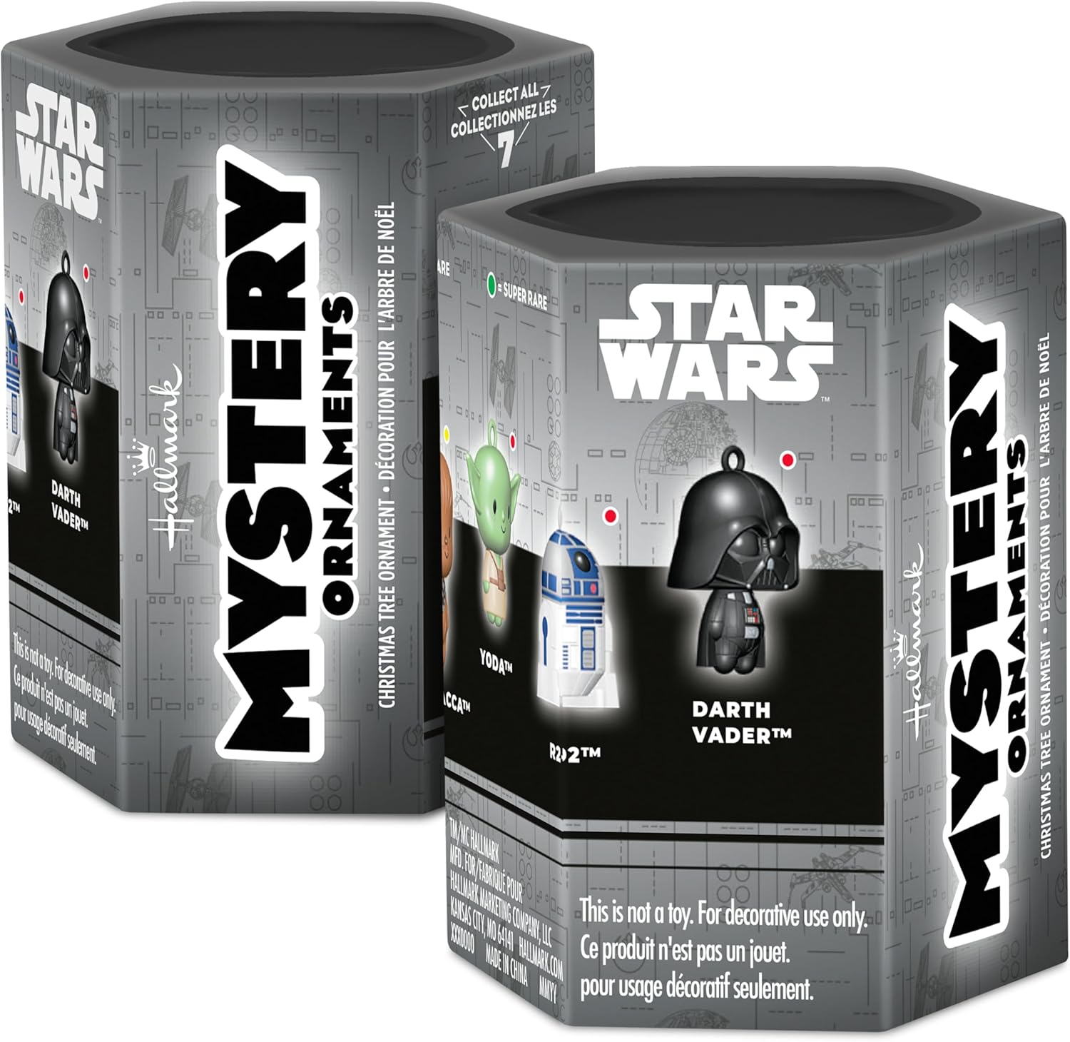 It's a mystery which Star Wars designs you will receive. Bundle includes only 2 Hallmark Christmas ornaments (2 blind boxes, 1 ornament each) packaged at random: Darth Vader, Luke Skywalker, Chewbacca, Leia Organa, R2-D2, Yoda or a rare Death Star.