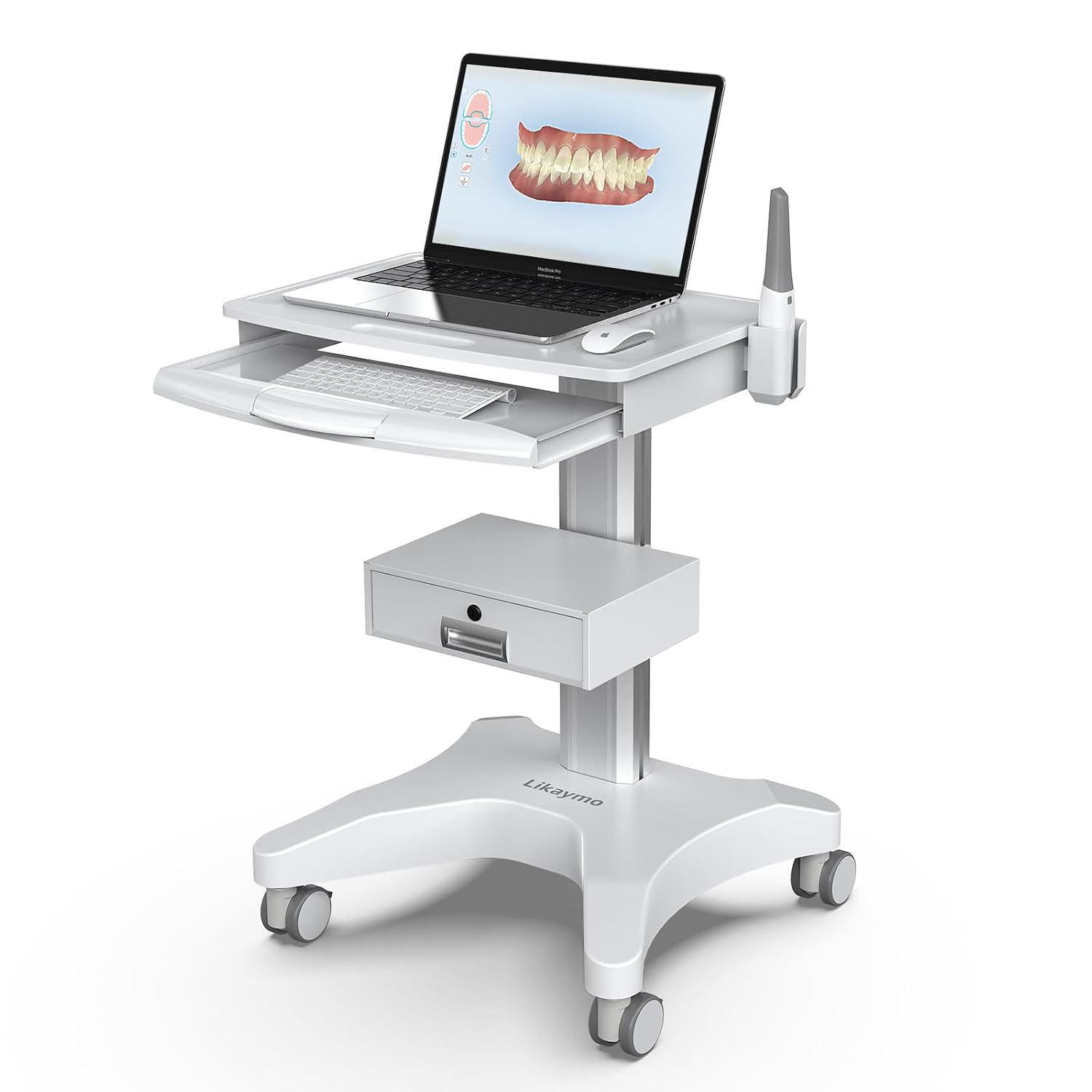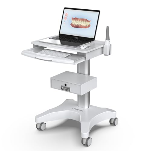 Medical Trolley Cart with Laptop Tray and Oral Scanner Holder, Mobile Workstation on Wheels with a Drawer for Hospital Dental Clinics Beauty Salons (OC-3)