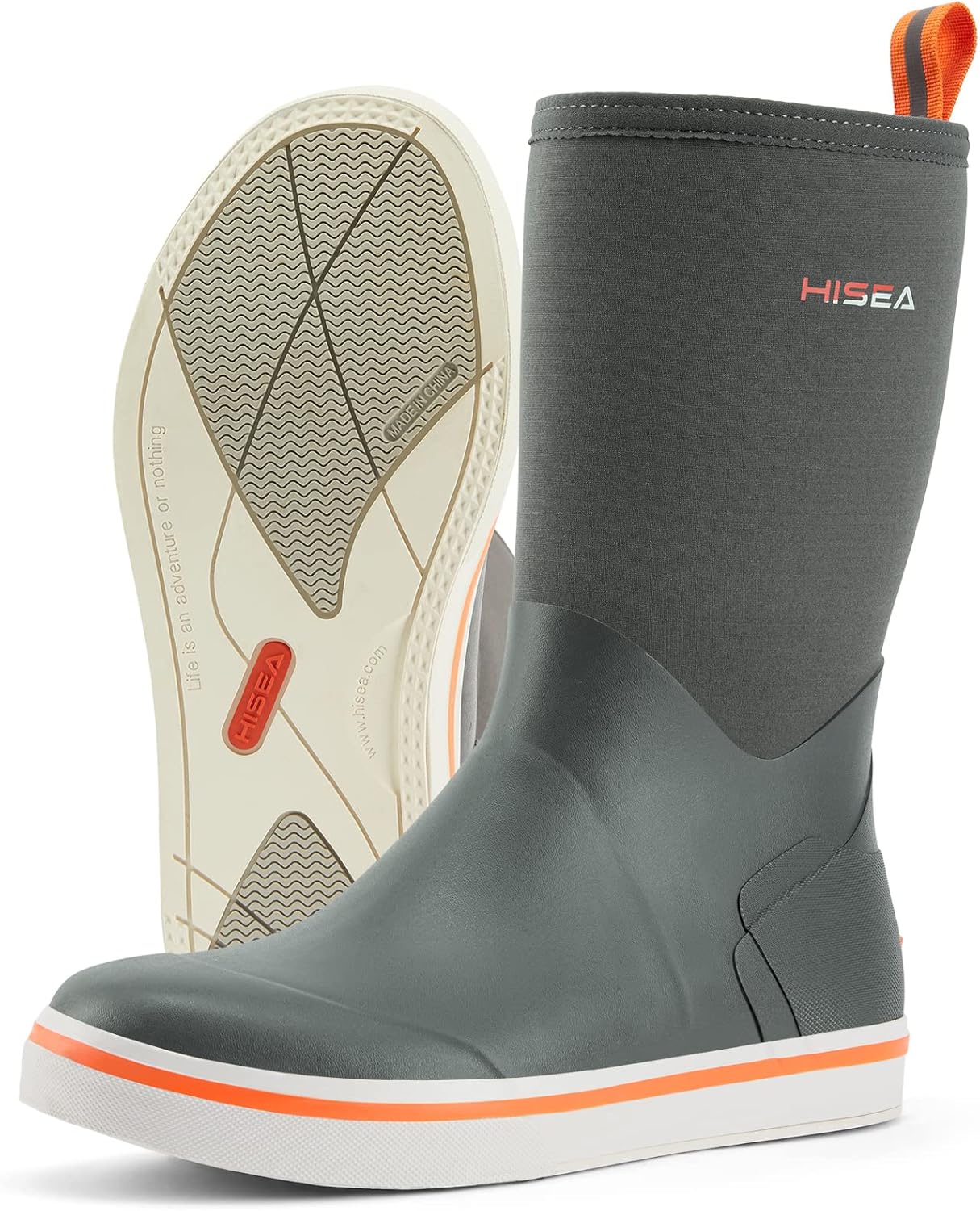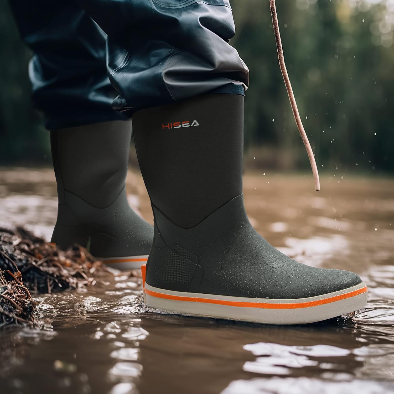 HISEA Men's Rubber Rain Boots Waterproof Garden Fishing Outdoor Deck Boots