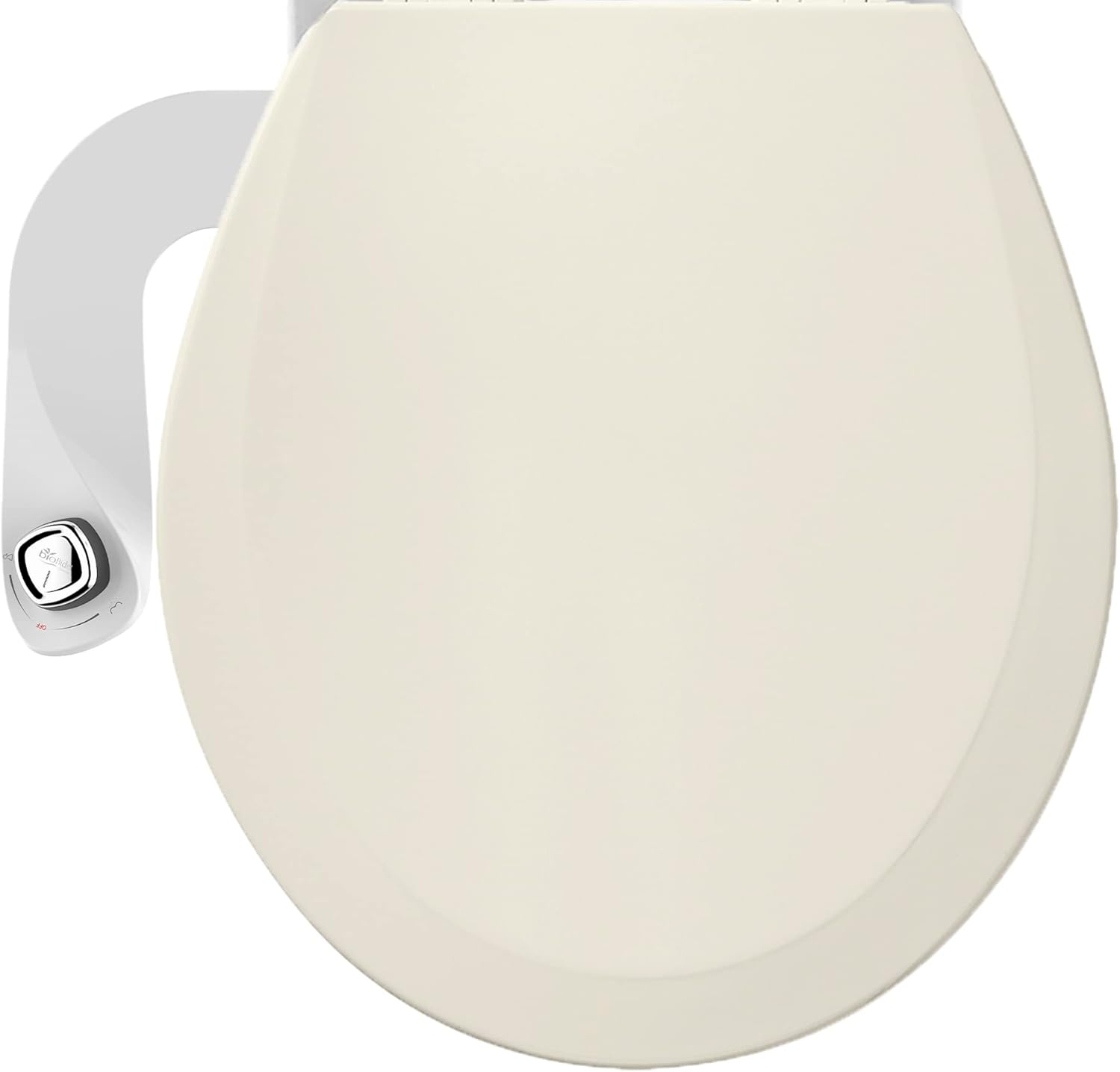Bio Bidet by Bemis 500EC Toilet Seat with Perfect Fit, Fresh Water Spray, Non-Electric, Easy to Install Bidet, ROUND, Biscuit